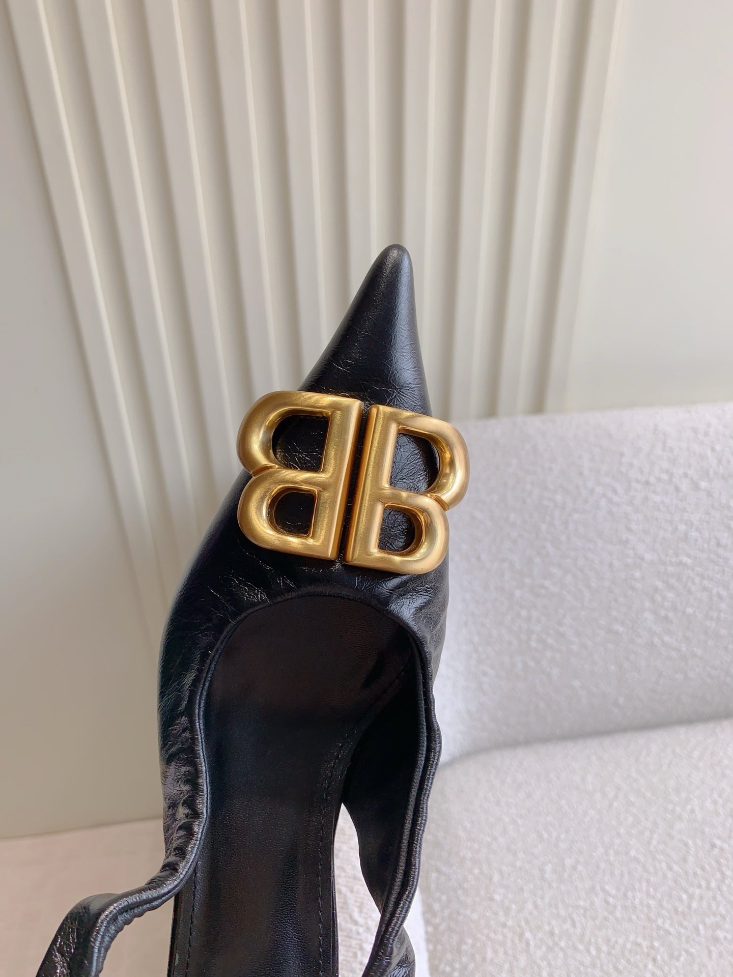 BALENCIAGA 25S HIGH SLINGBACK 35 MM IN BLACK LAMBSKIN WITH GOLD HARDWARE