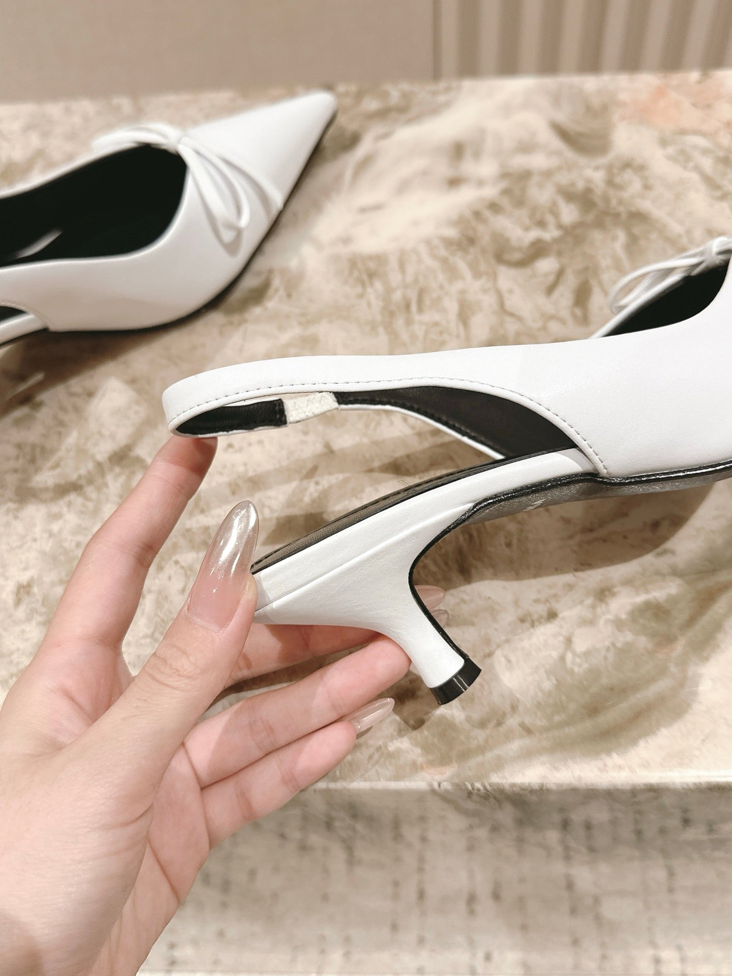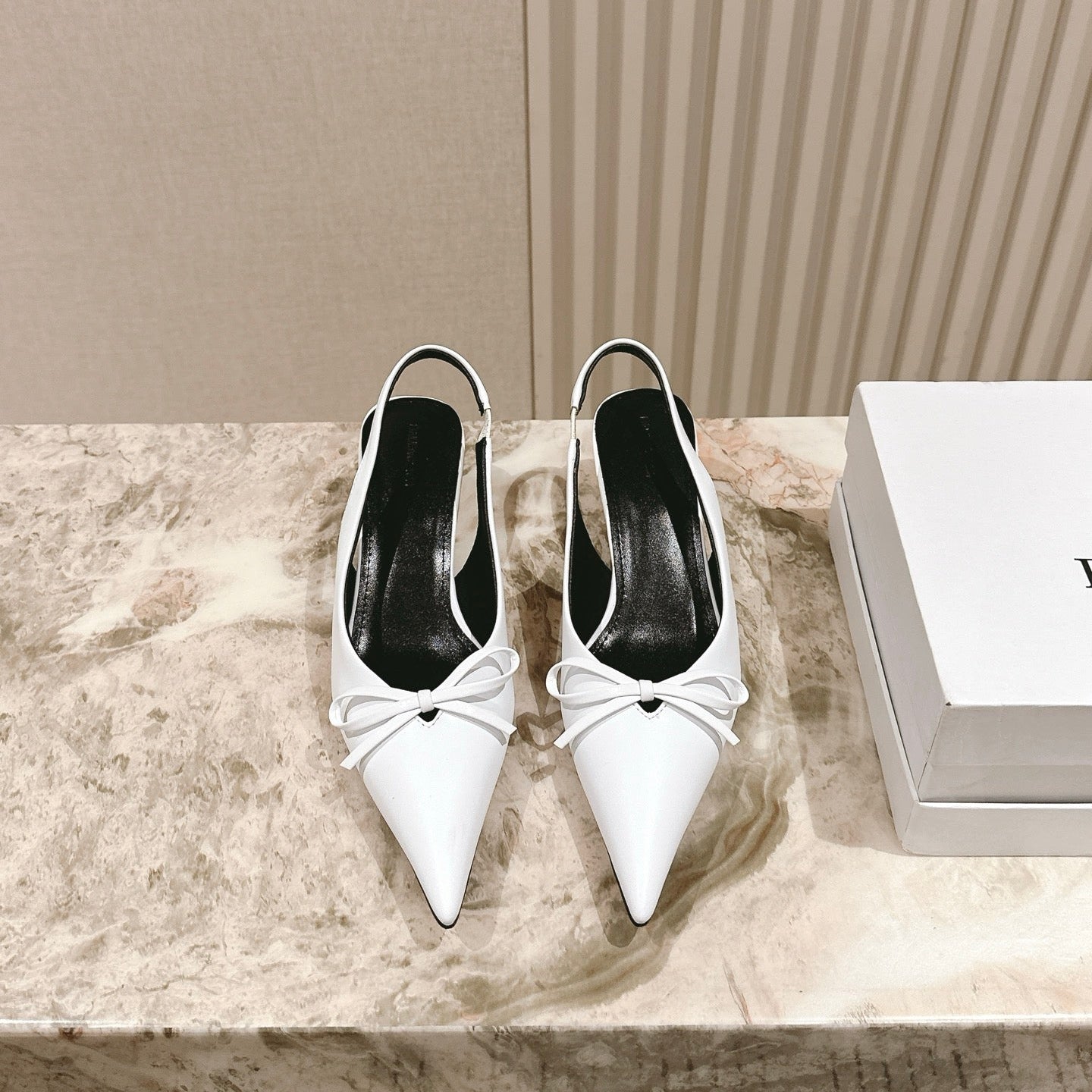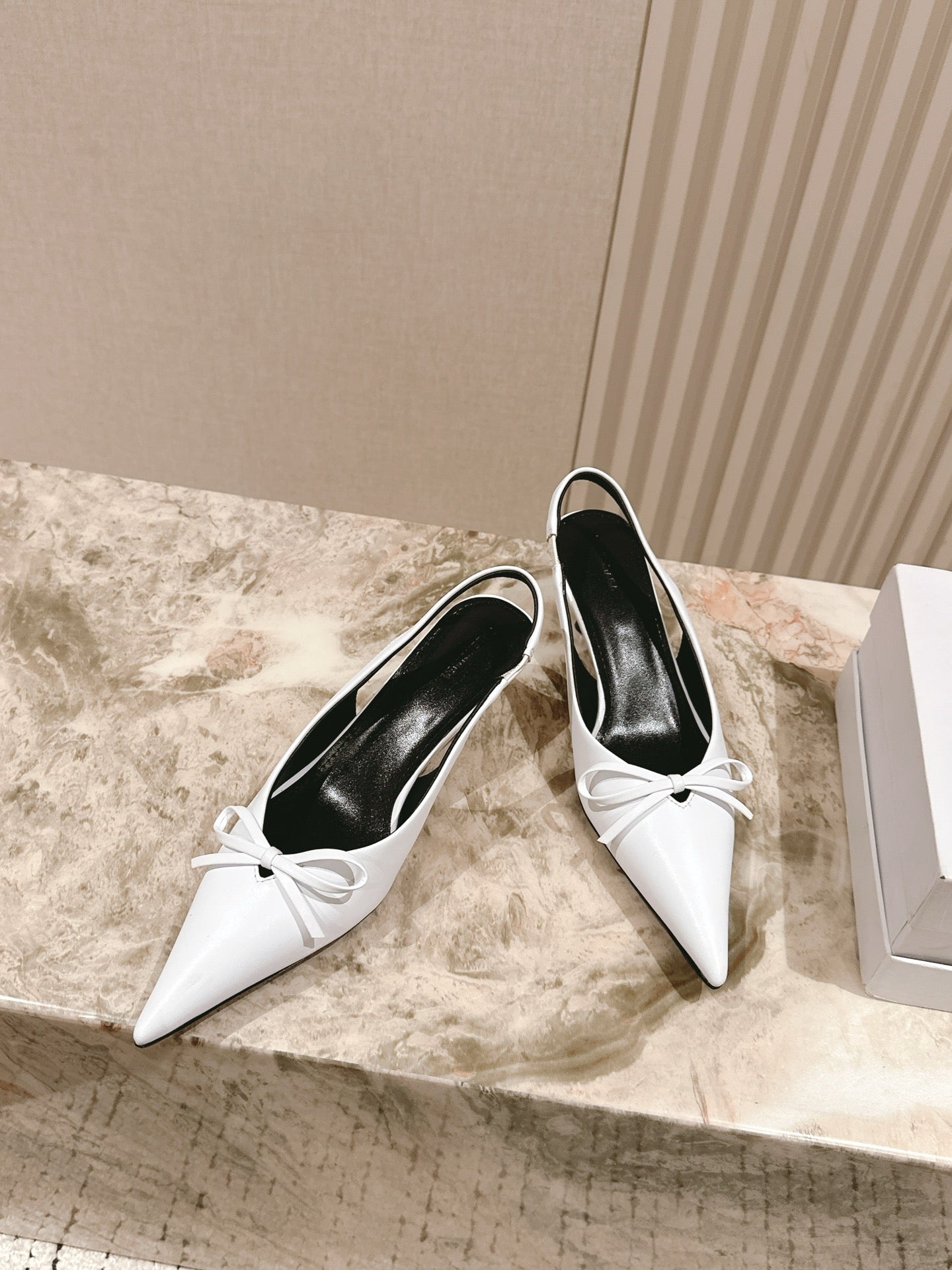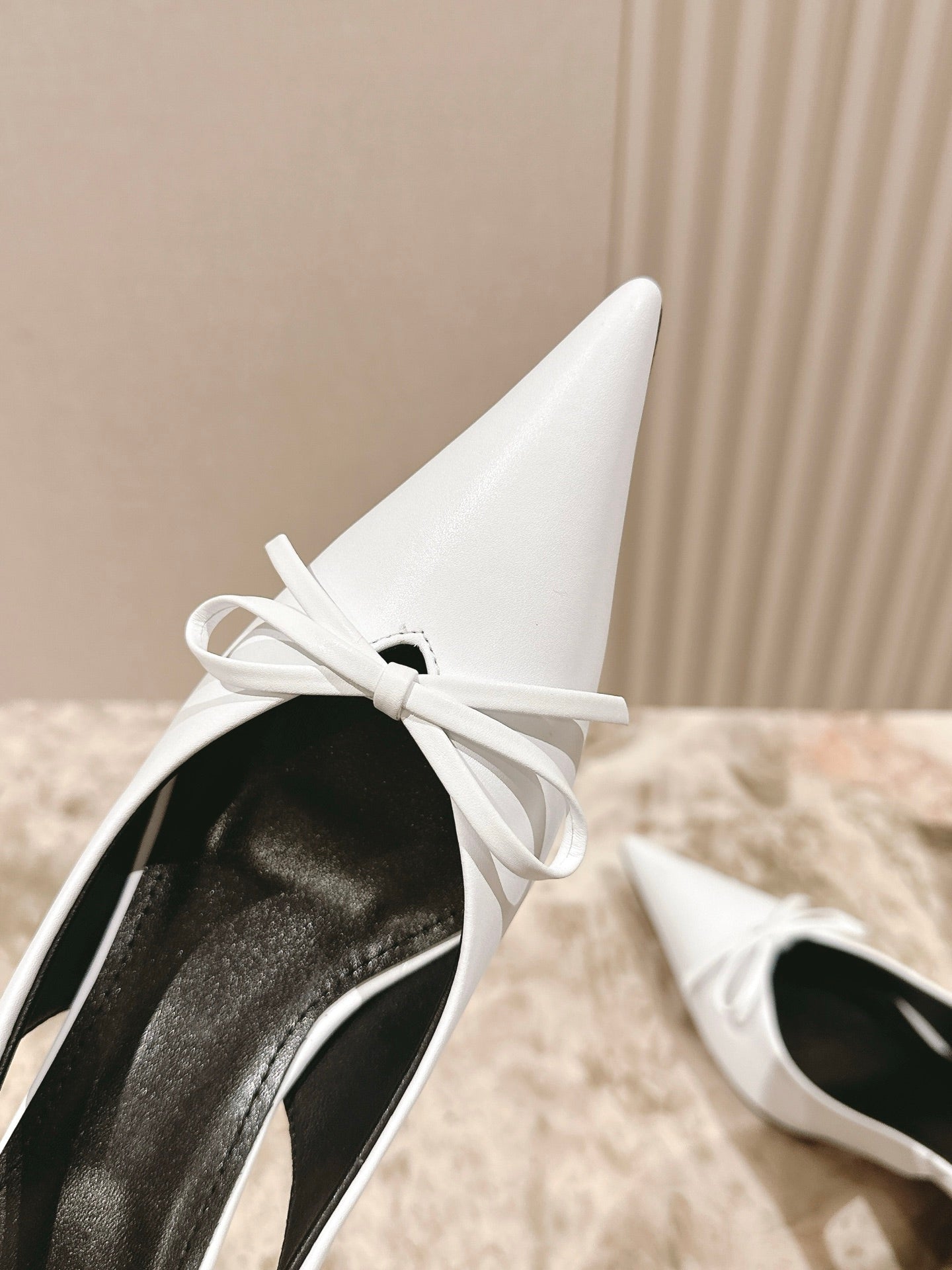 BALENCIAGA 25S HIGH SLINGBACK IN WHITE CALFSKIN WITH SMALL BOW