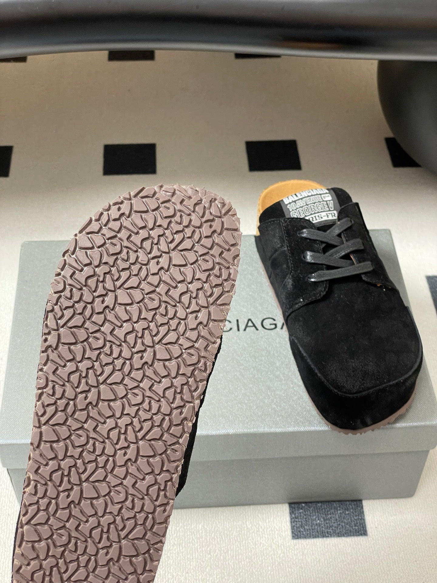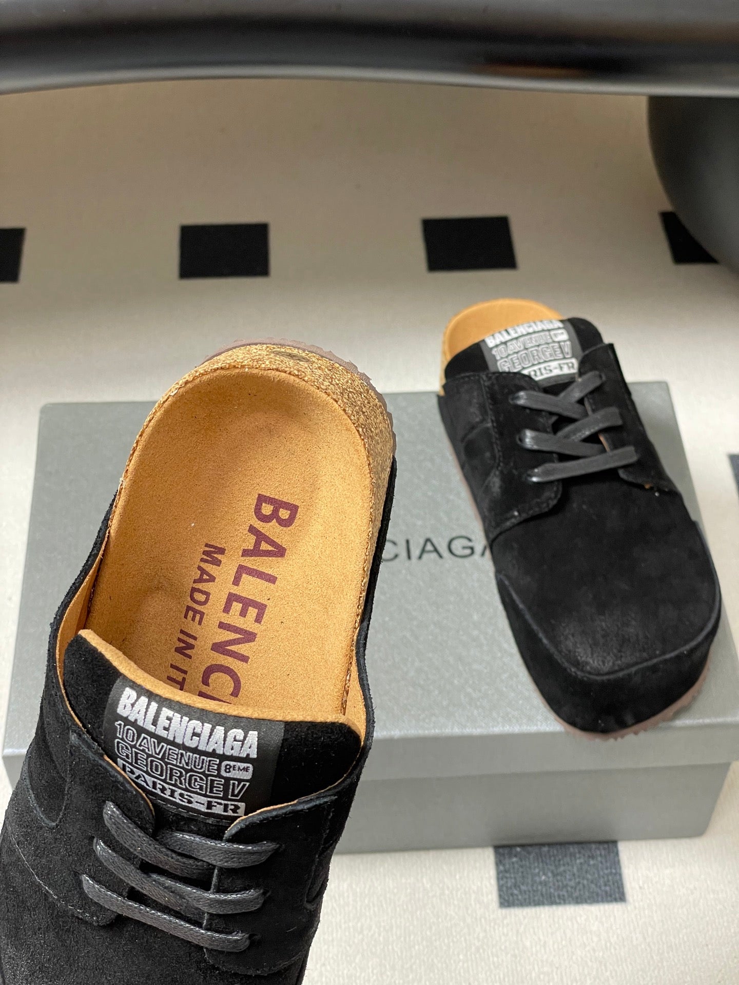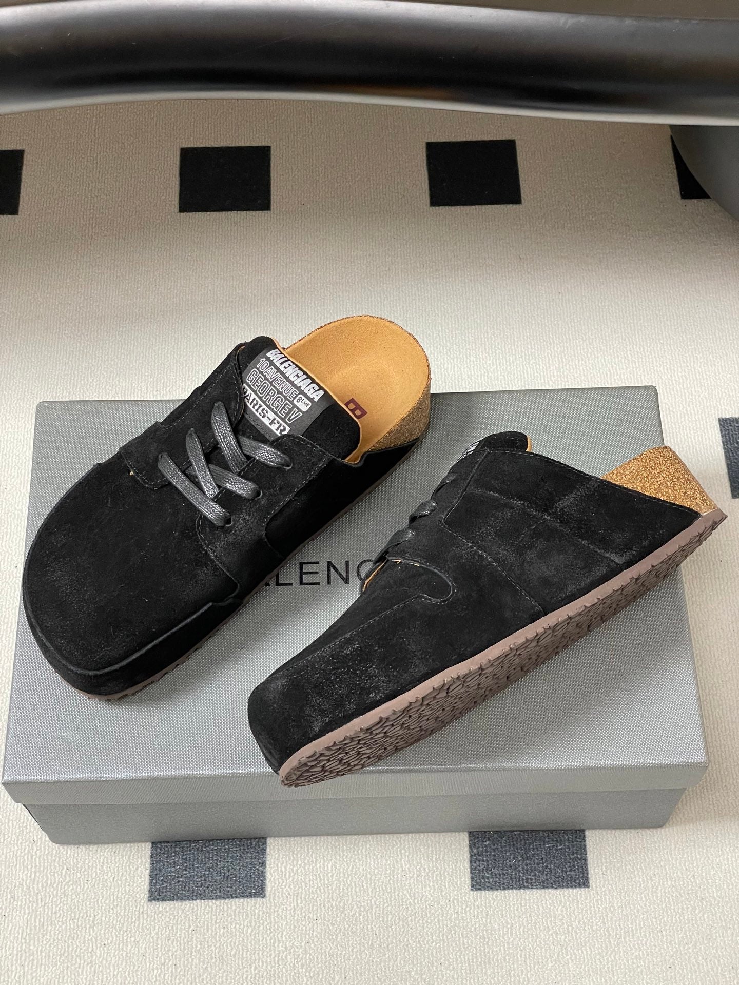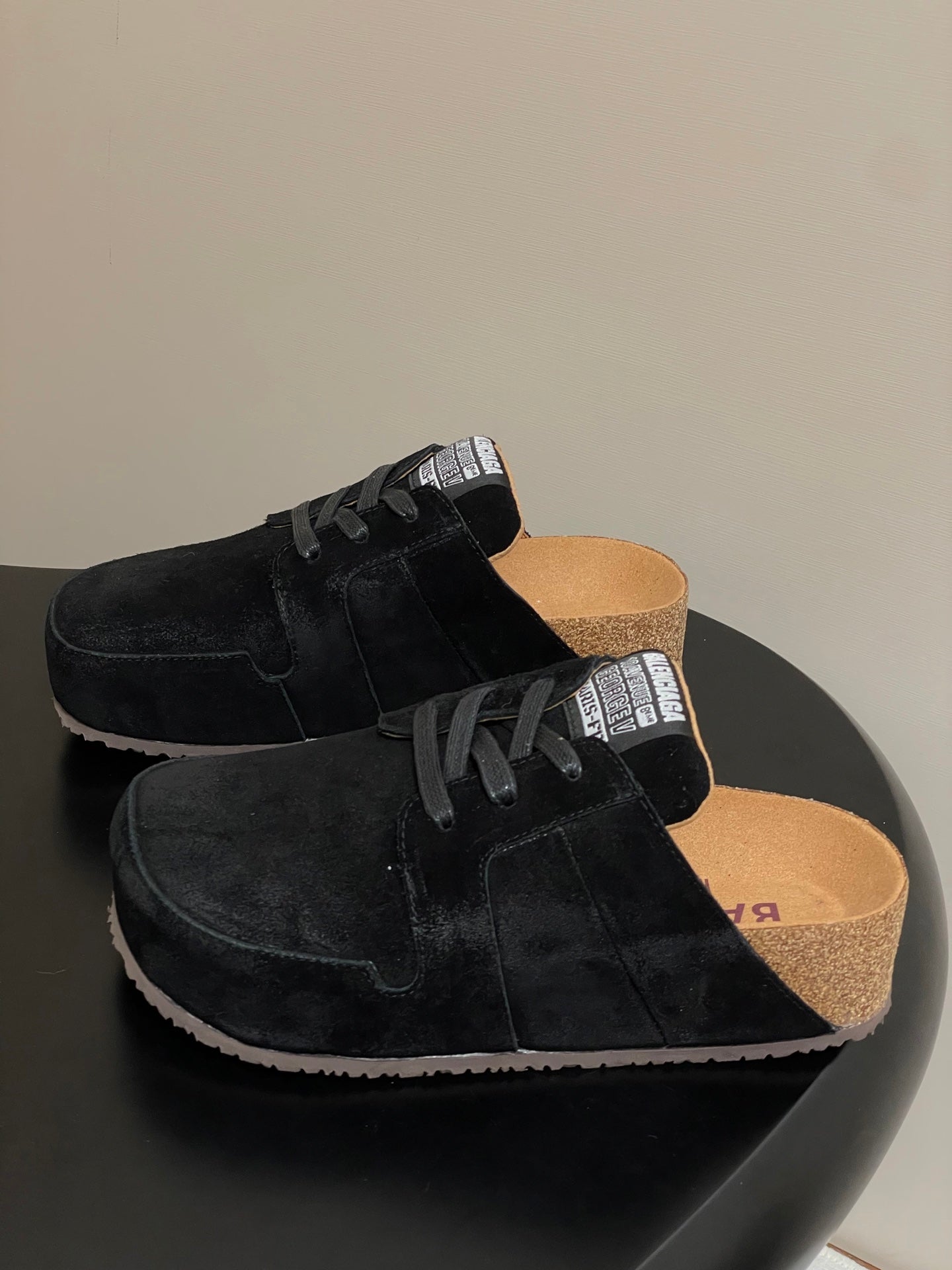 BALENCIAGA 25S MULES BIRKENSTOCK IN BLACK SUEDE