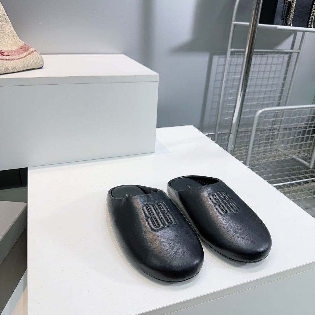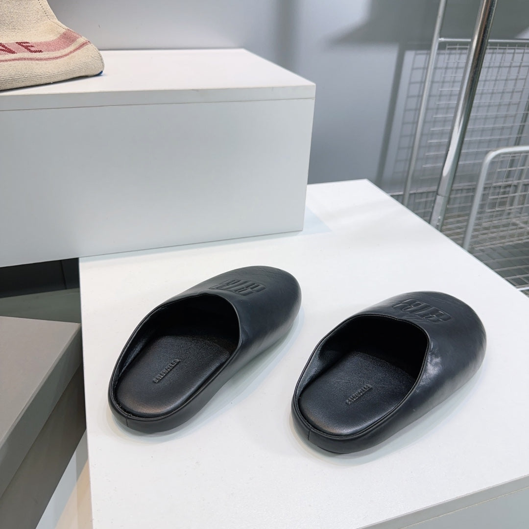BALENCIAGA 25S MULES IN BLACK LAMBSKIN