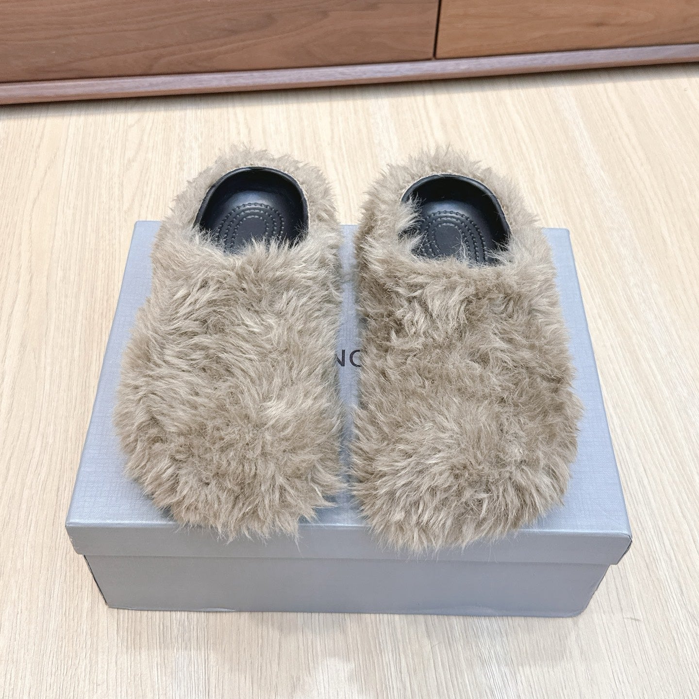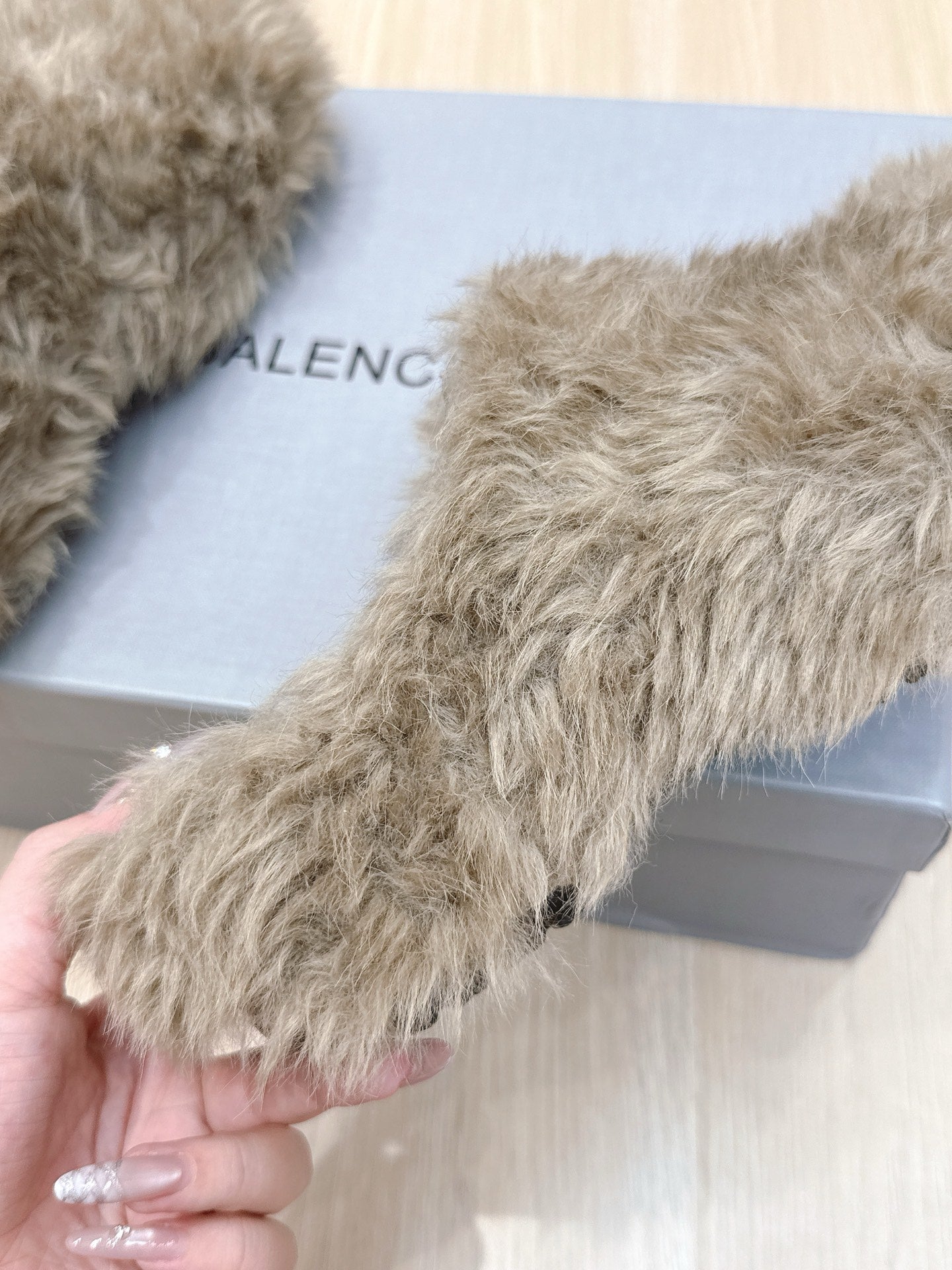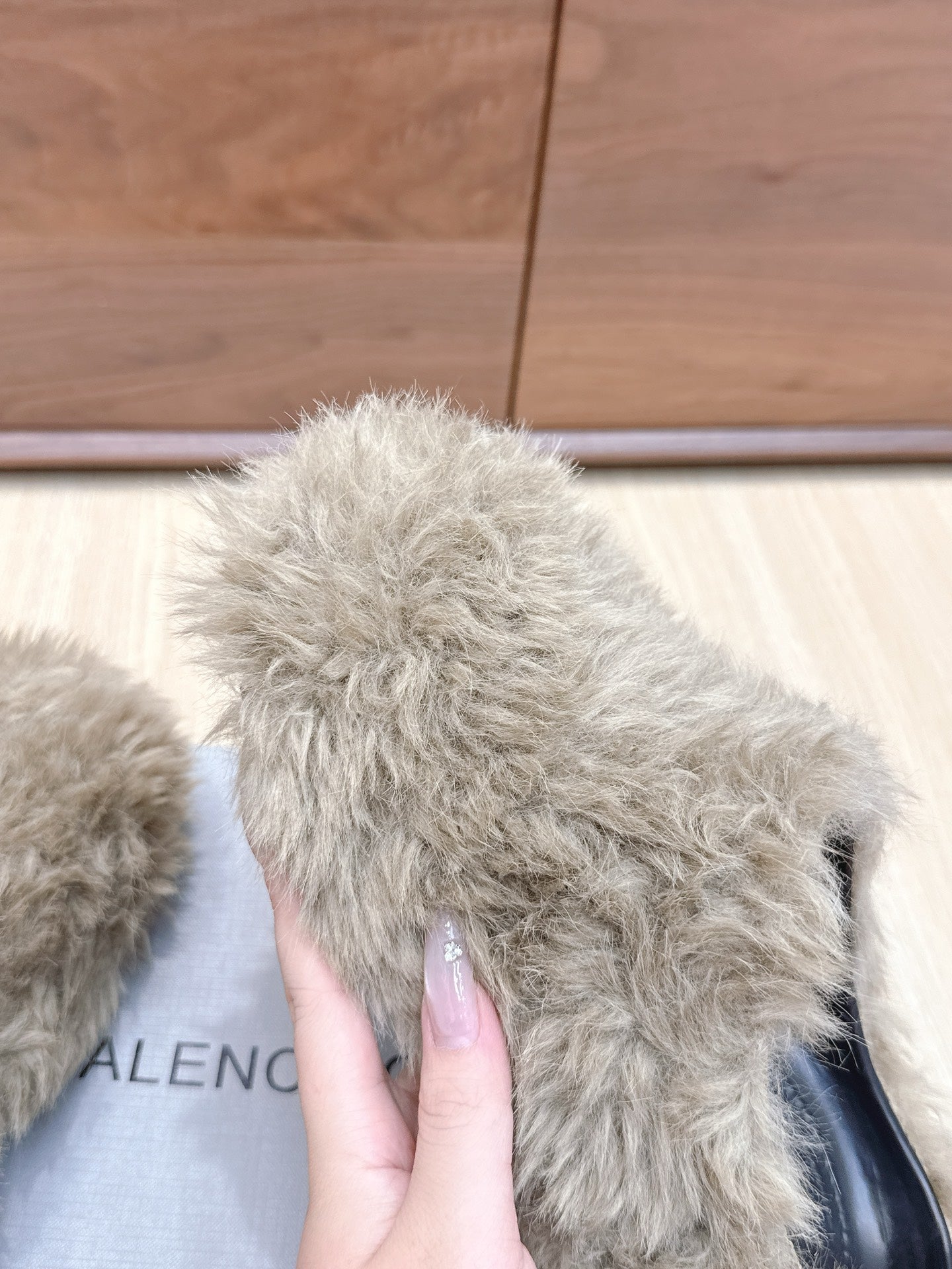 BALENCIAGA 25S MULES IN LIGHT BEIGE FAUX FUR