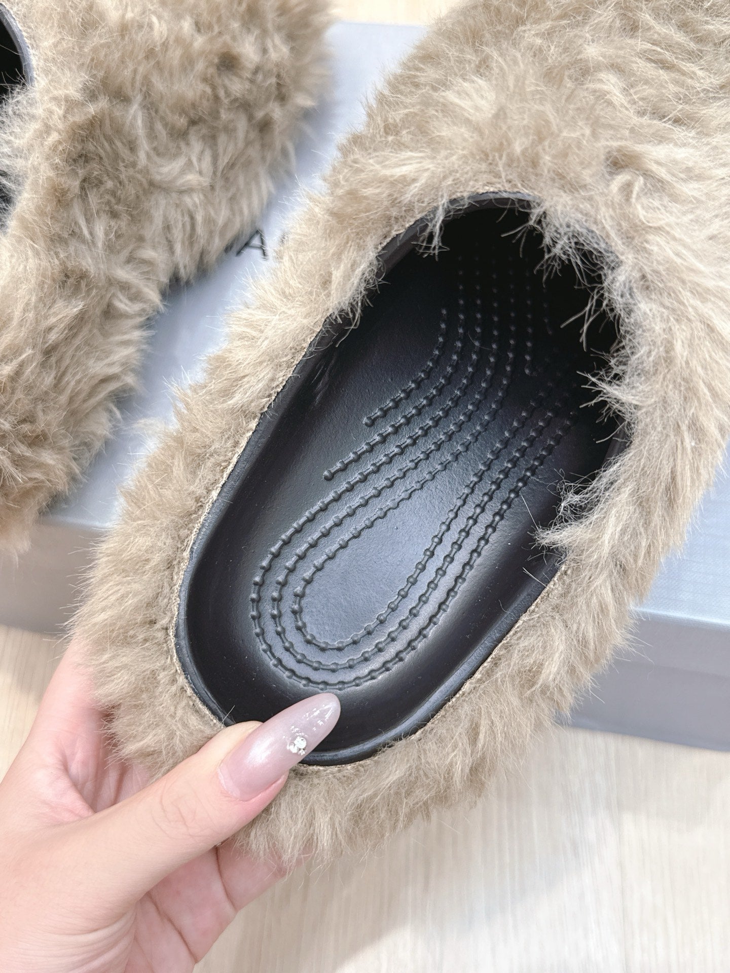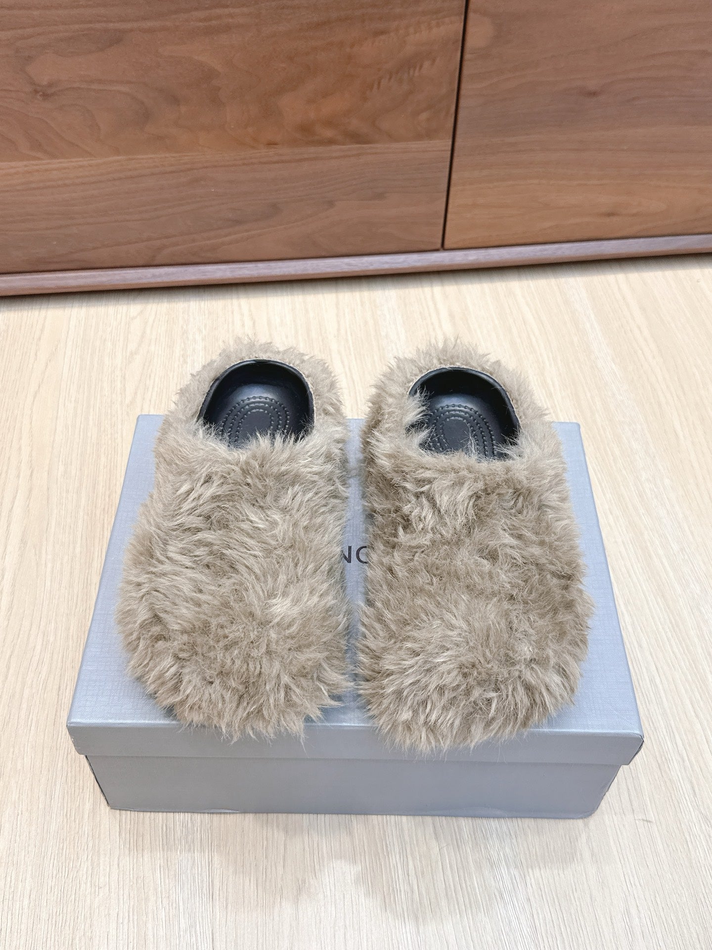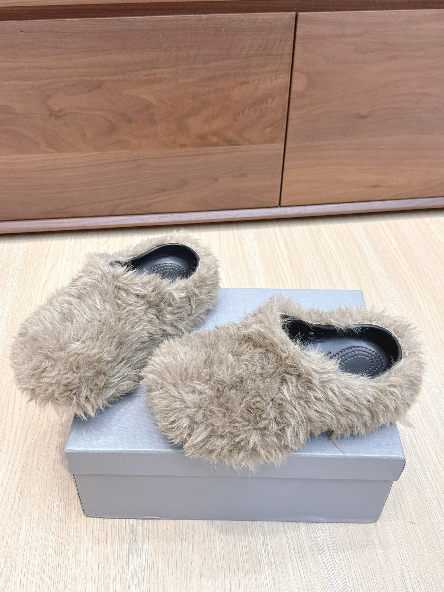 BALENCIAGA 25S MULES IN LIGHT BEIGE FAUX FUR