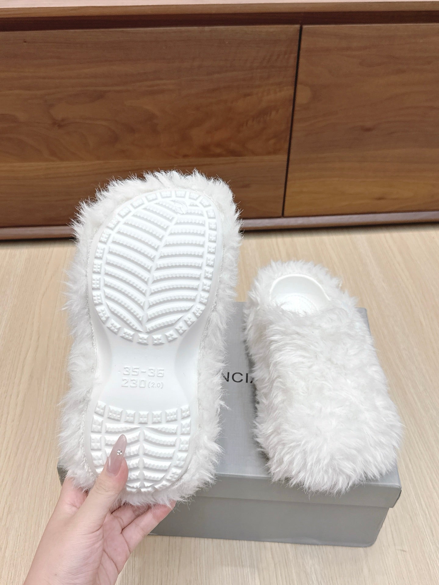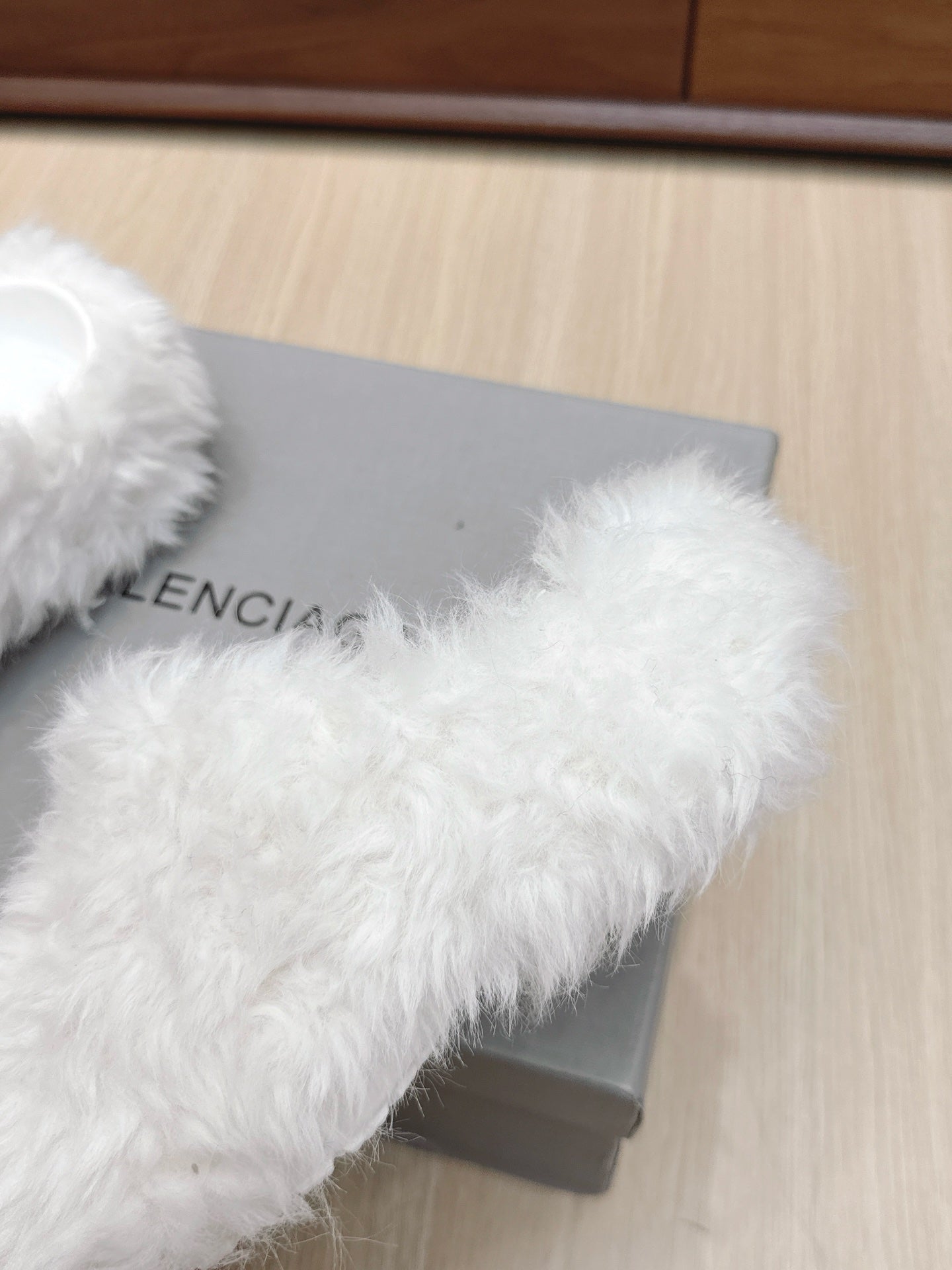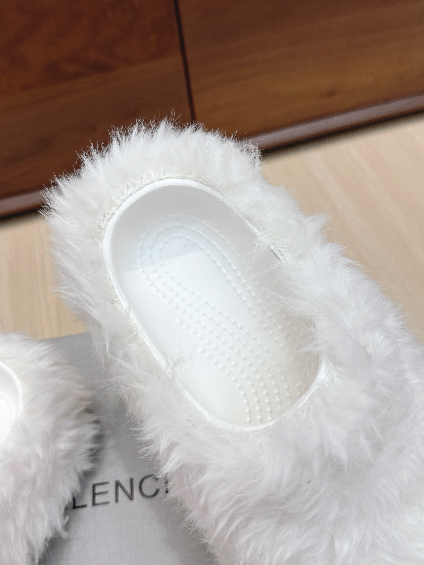 BALENCIAGA 25S MULES IN WHITE FAUX FUR