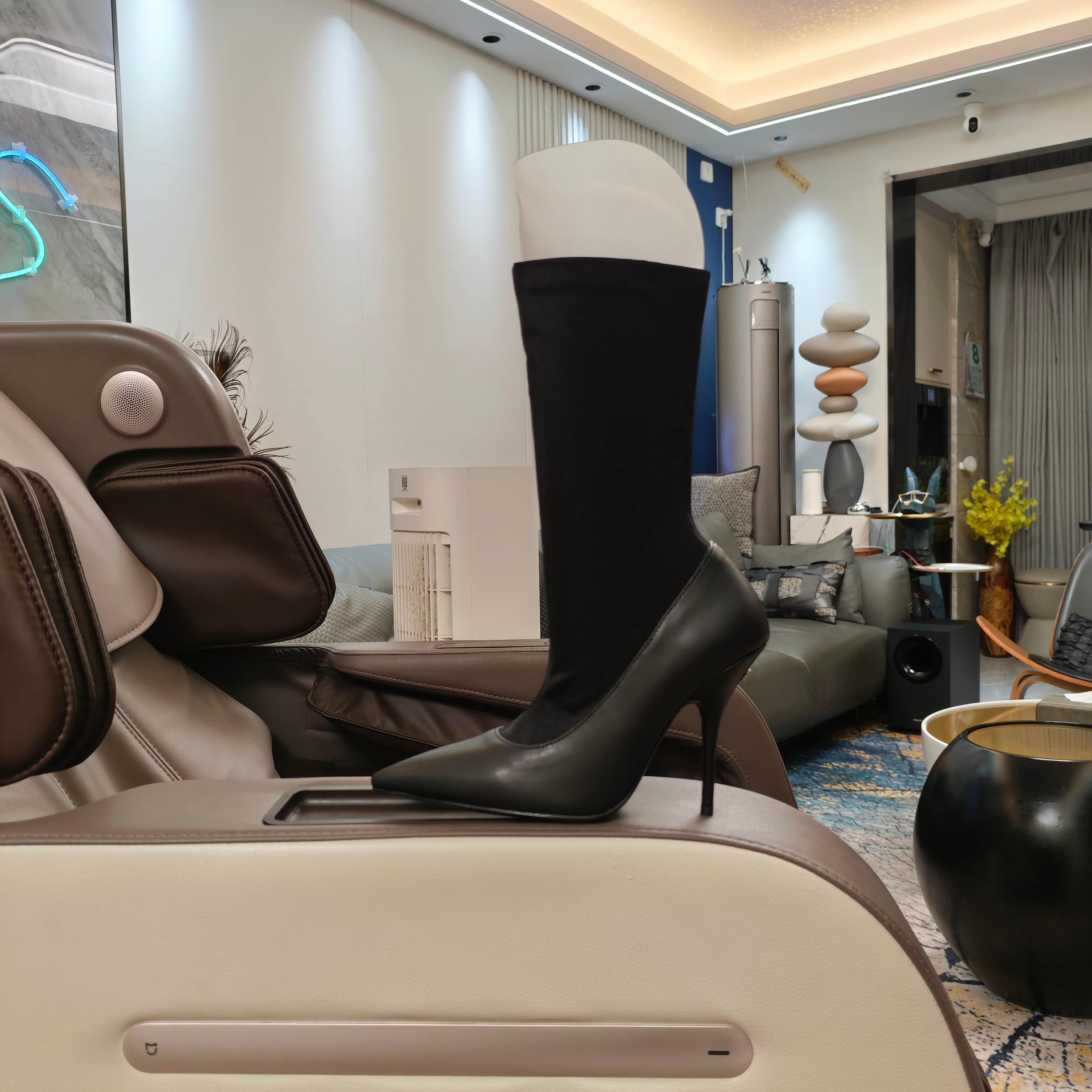 BALENCIAGA 25S POINTED-TOE HIGH HEELS 90 MM IN BLACK FABRIC AND CALFSKIN STYLE 4