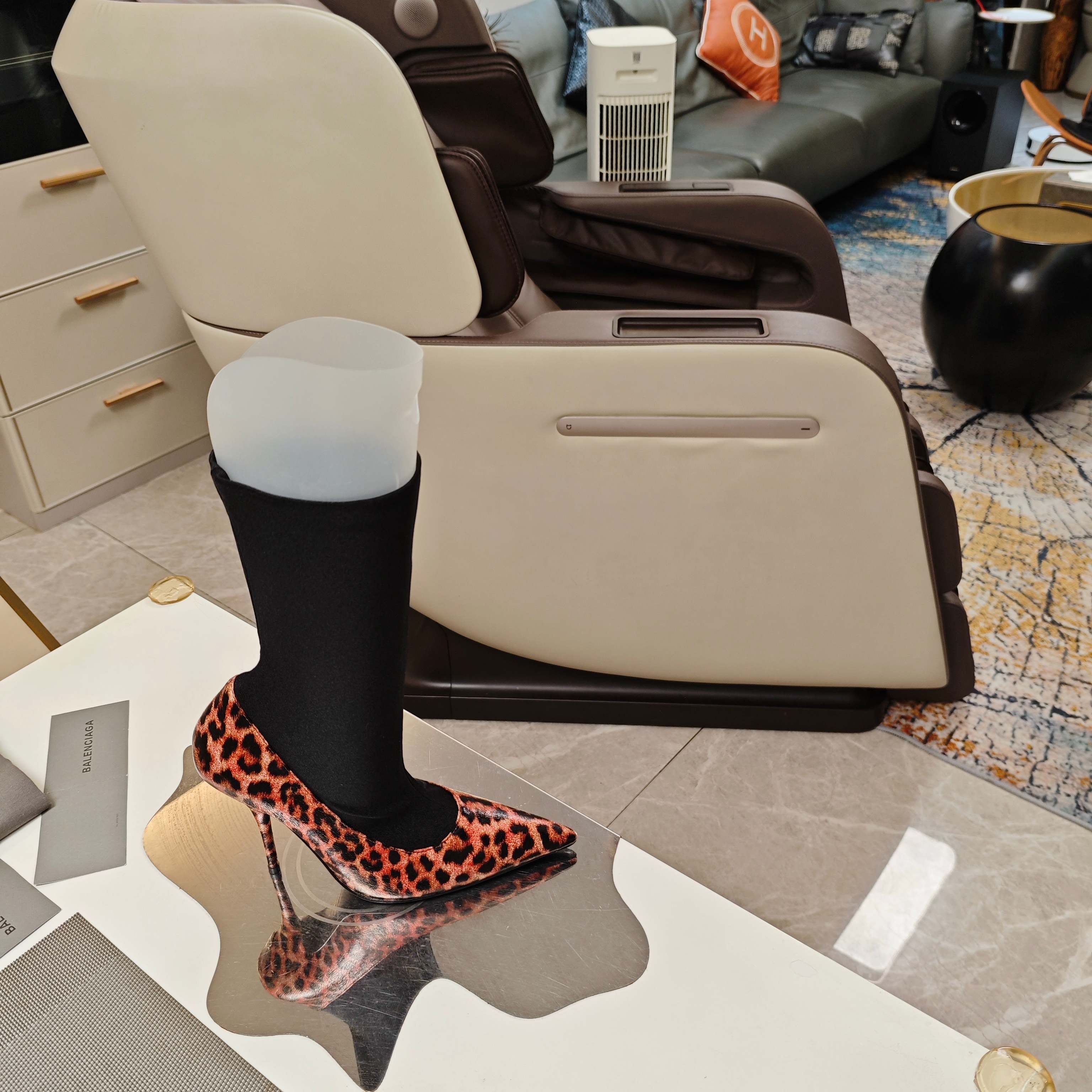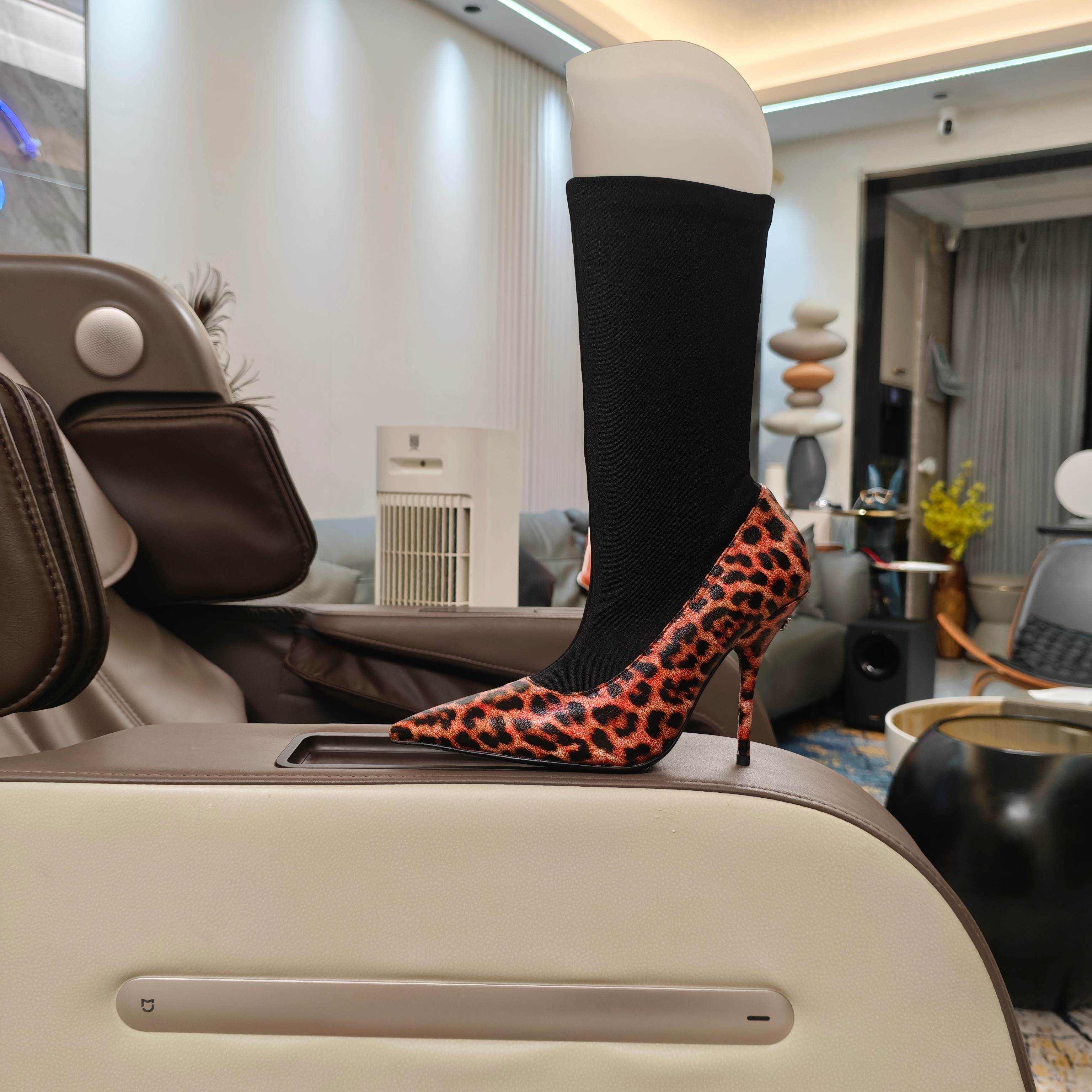 BALENCIAGA 25S POINTED-TOE HIGH HEELS 90 MM IN BLACK FABRIC AND LEOPARD PRINT CALFSKIN STYLE 1