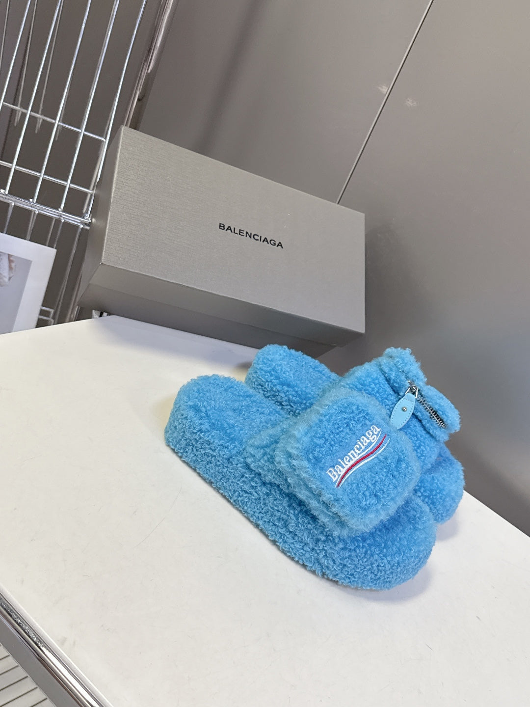 BALENCIAGA 25S SLIPPERS IN BLUE FAUX SHEARLING