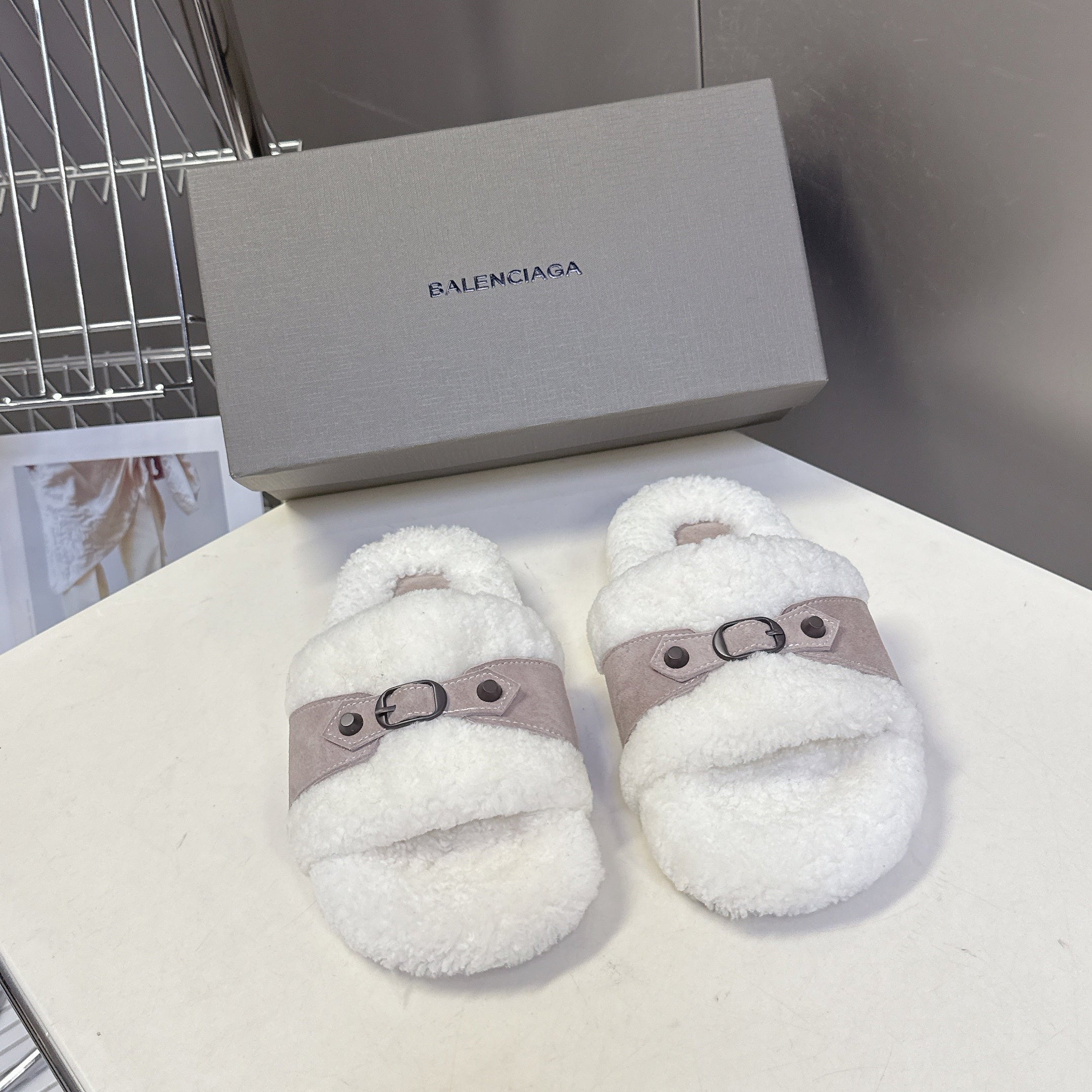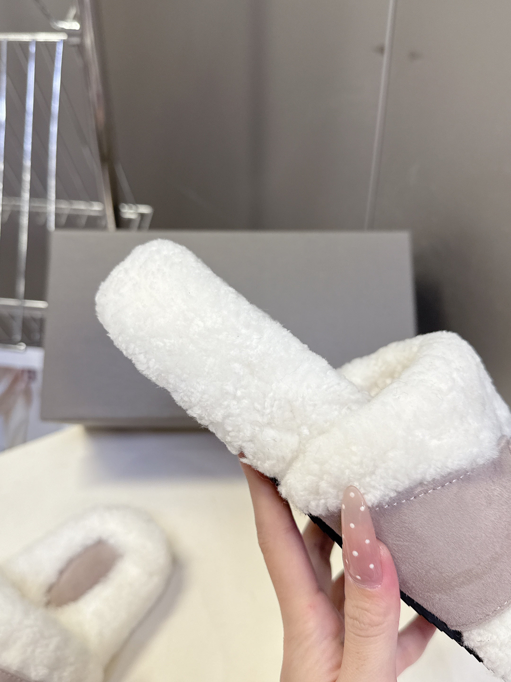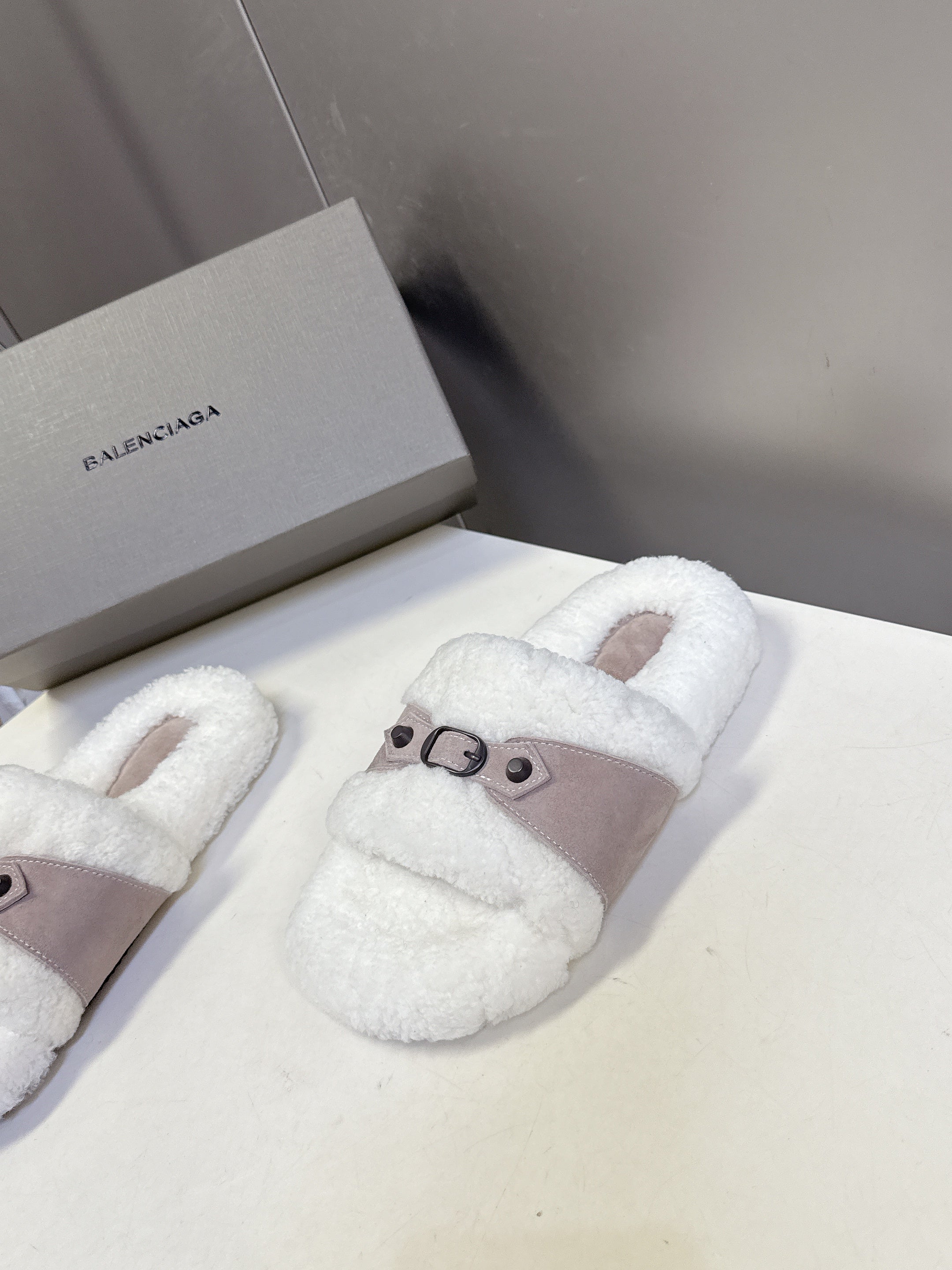BALENCIAGA 25S SLIPPERS IN DUSTY PINK GRAY SUEDE AND WHITE WOOL