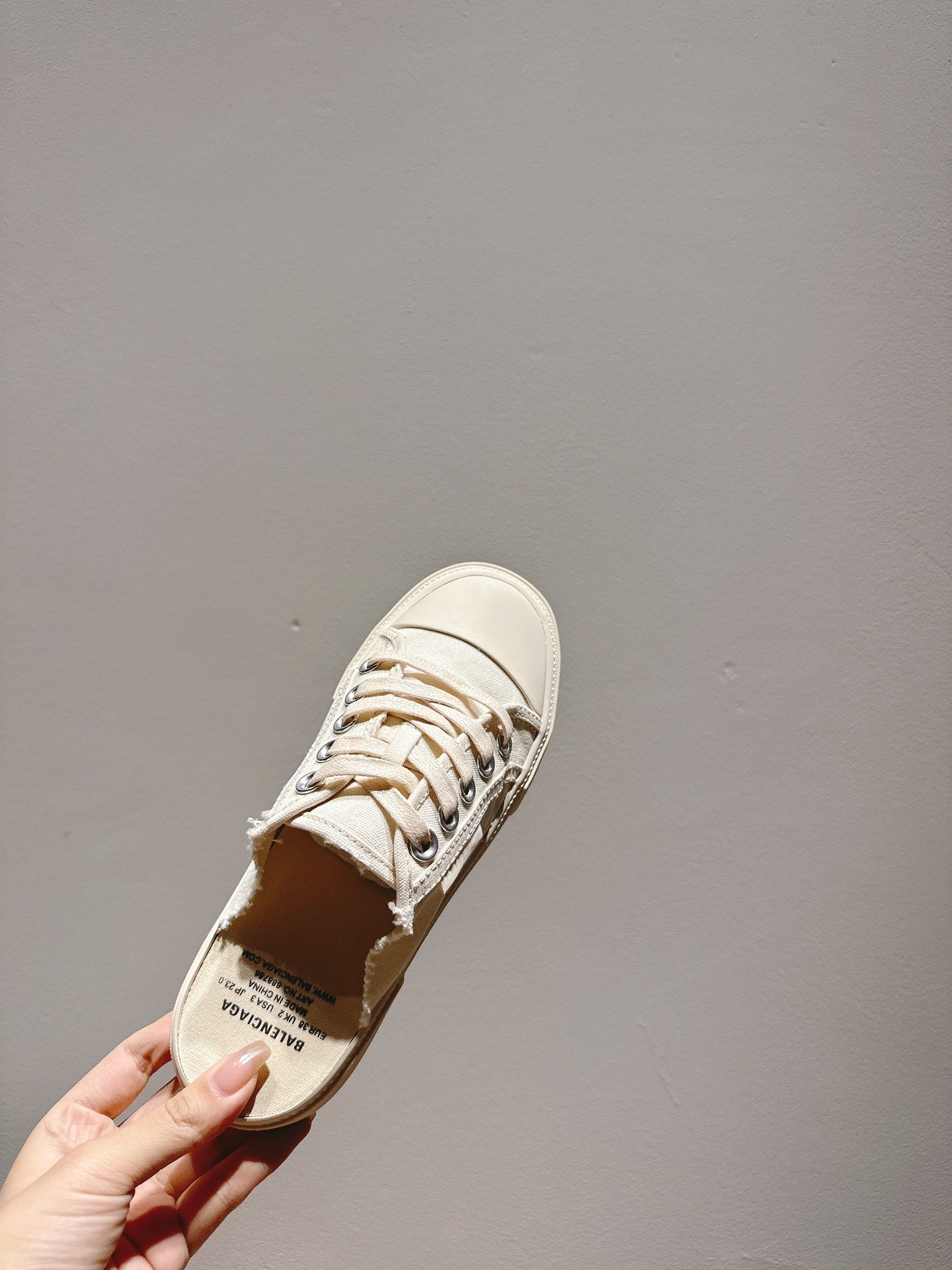 BALENCIAGA 25S SPORT CLOGS IN CREAM WHITE CANVAS