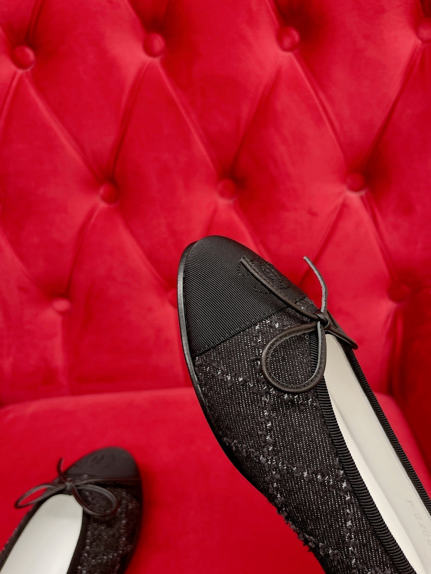 ballet flat black denim grosgrain