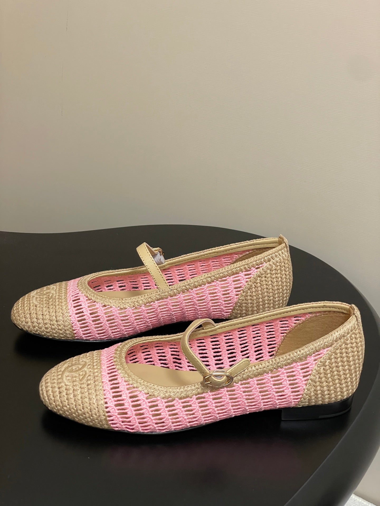 BALLET MARY JANE 10MM IN NATURAL BEIGE AND PINK RAFFIA