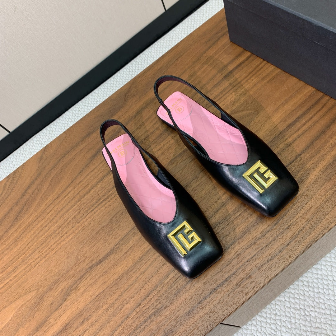 BALMAIN 25S FLAT EDEN SLINGBACKS IN BLACK CALFSKIN