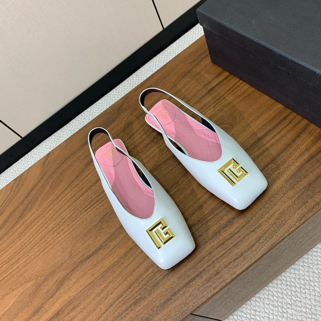 BALMAIN 25S FLAT EDEN SLINGBACKS IN WHITE CALFSKIN