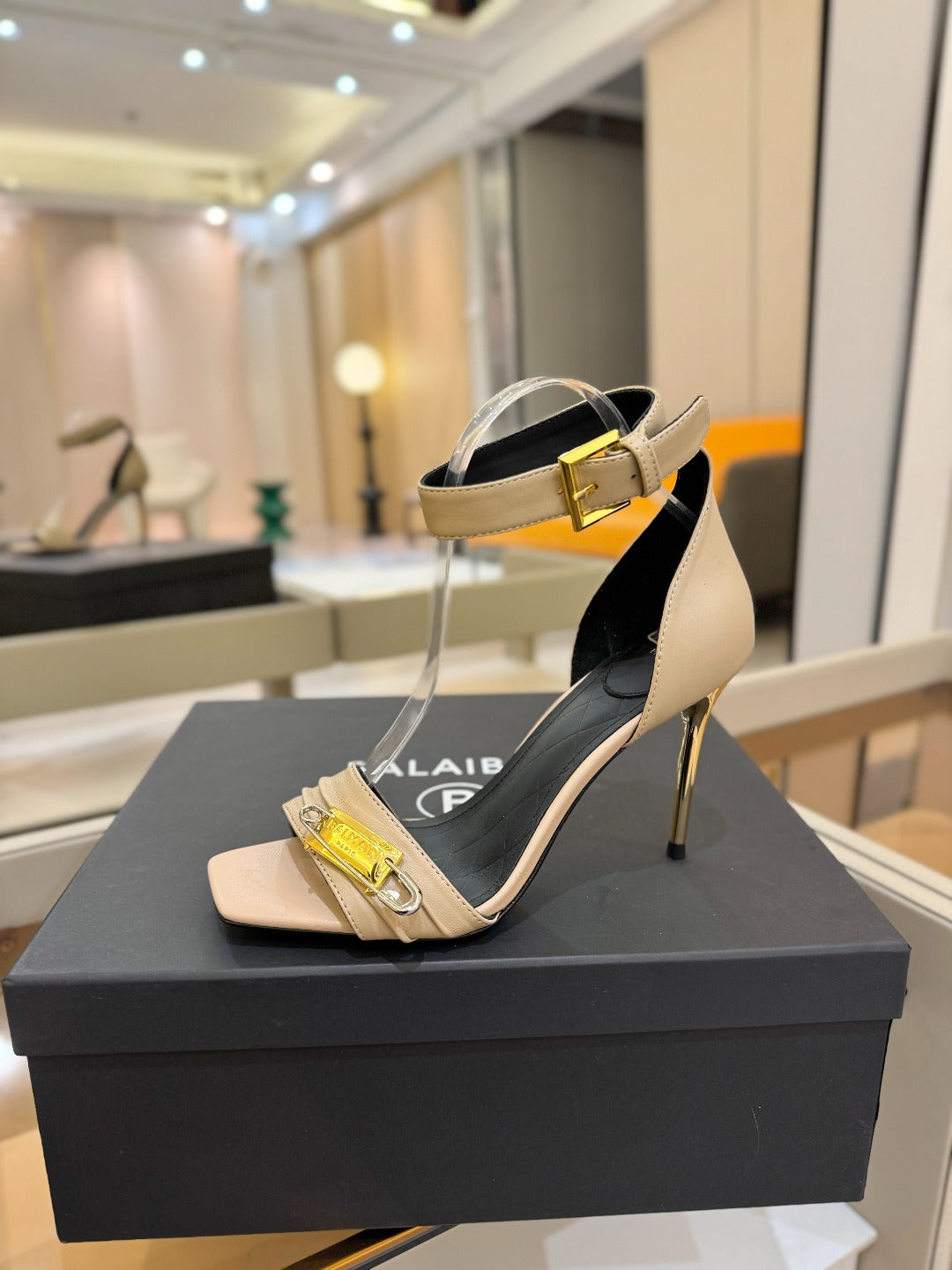 BALMAIN 25S HIGH HEELS 95MM IN BEIGE CALFSKIN