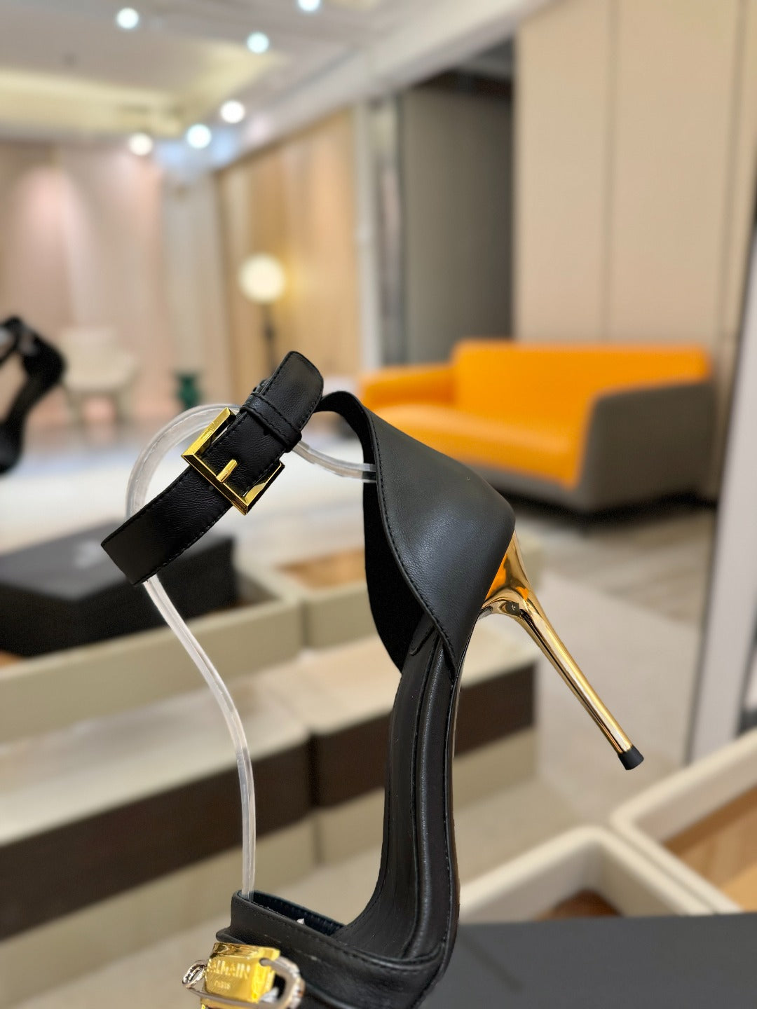 BALMAIN 25S HIGH HEELS 95MM IN BLACK CALFSKIN