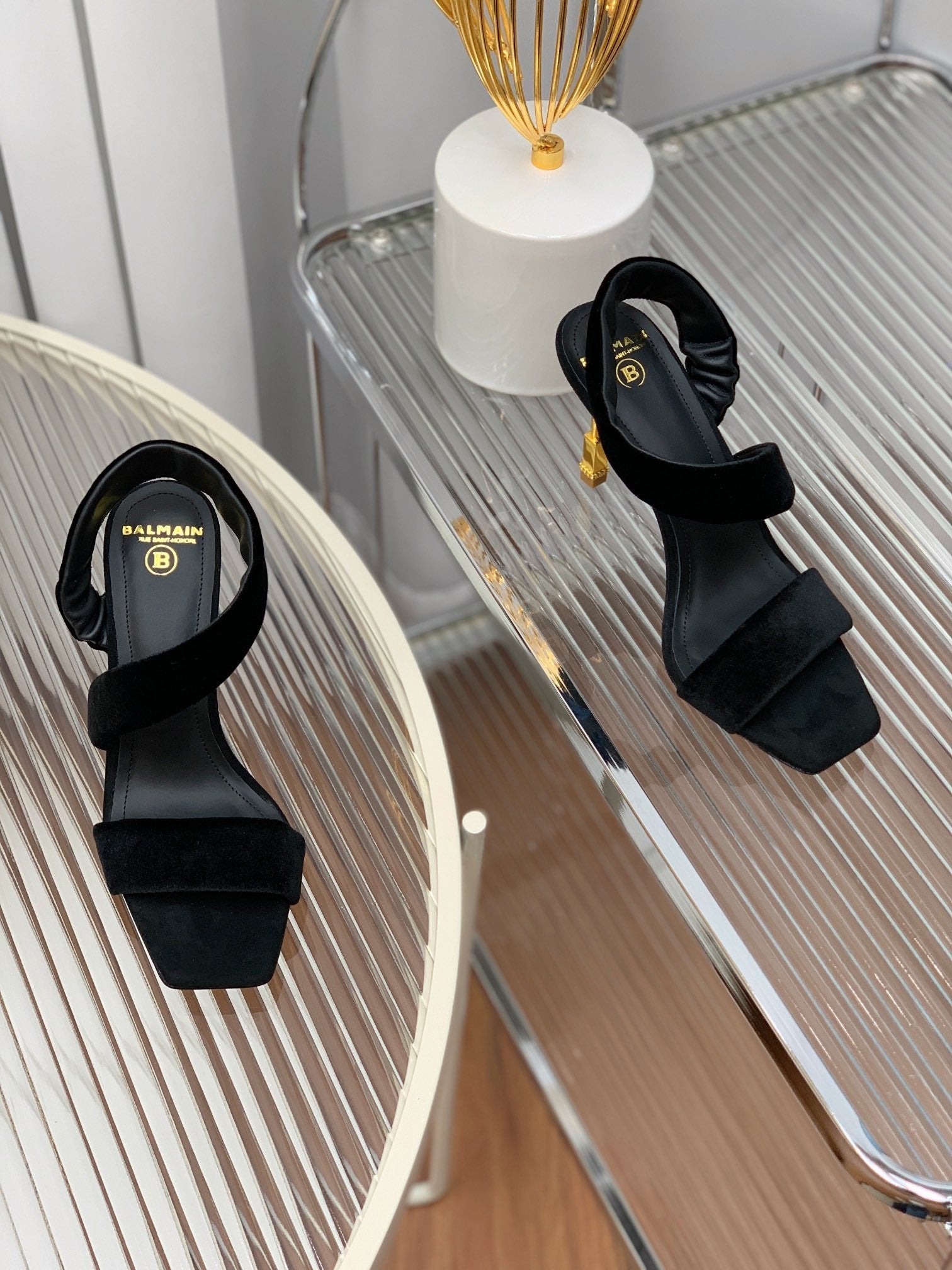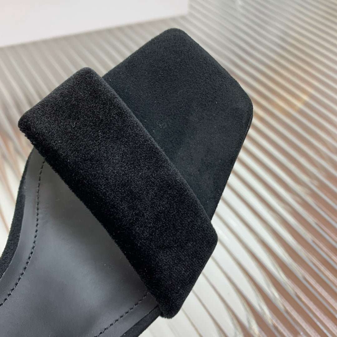BALMAIN 25S MONETA HEELED SANDALS 95MM IN BLACK VELVET