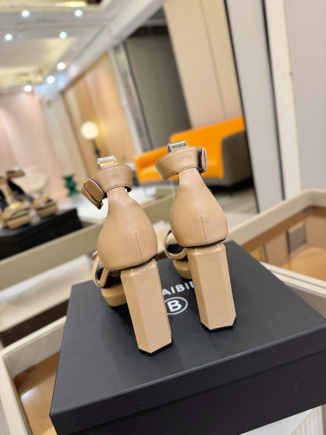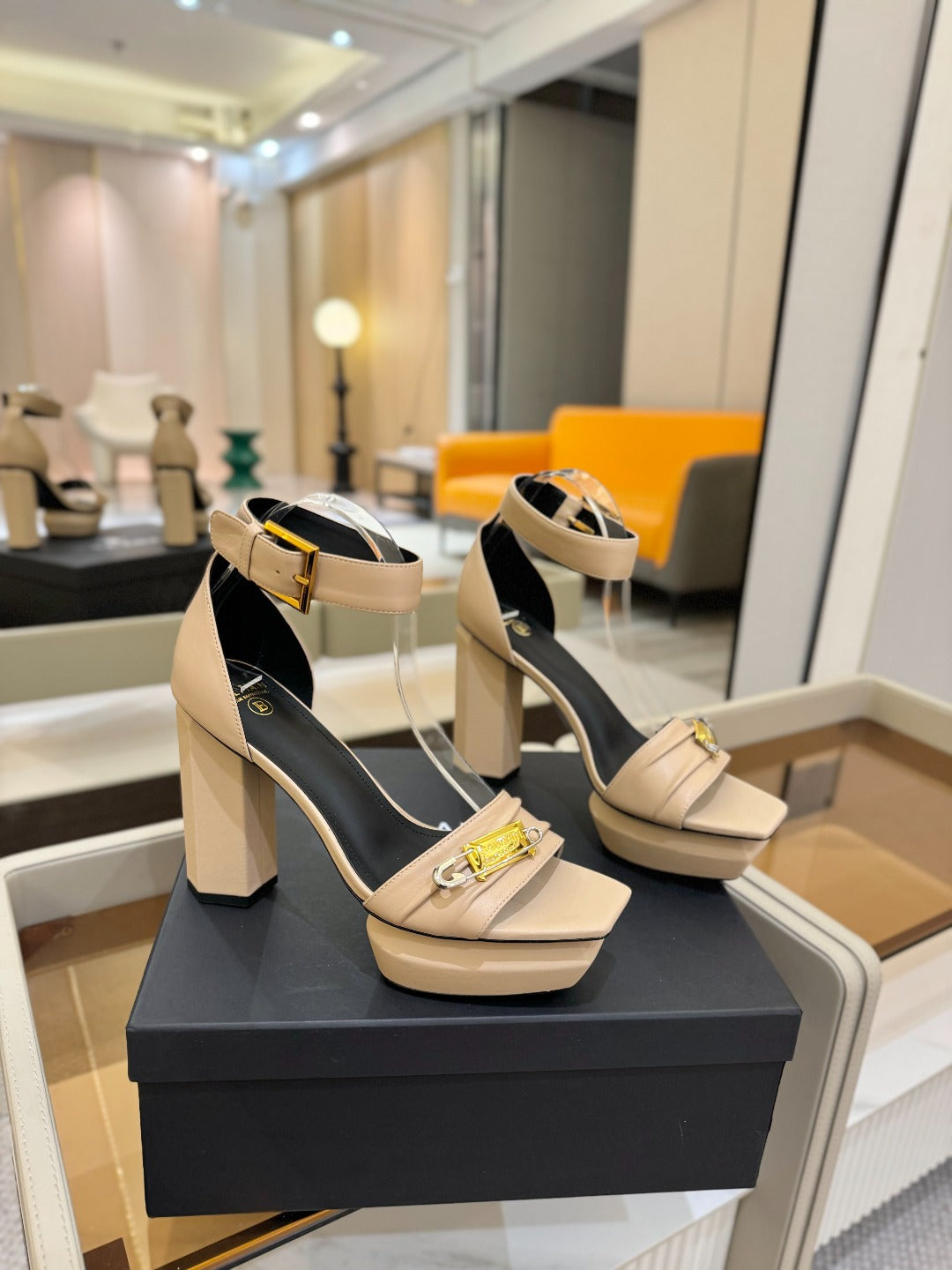 BALMAIN 25S WEDGE HEELS 100MM IN NUDE CALFSKIN