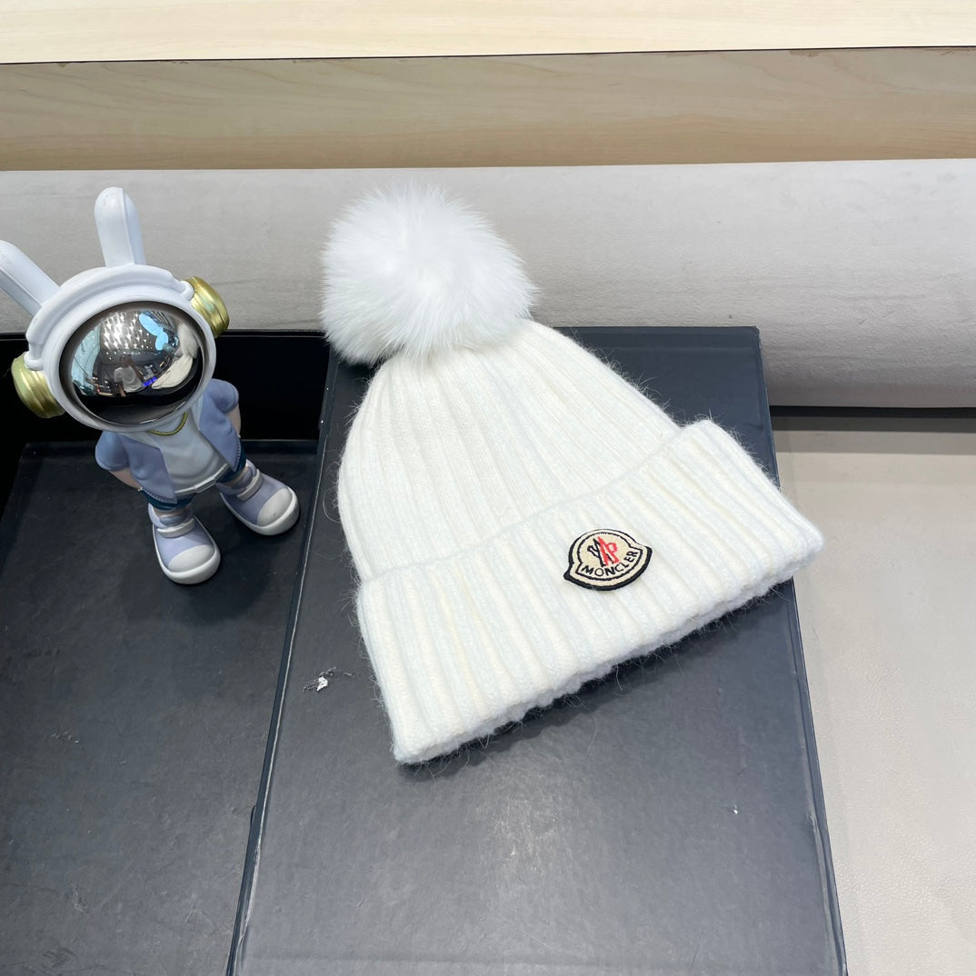 BEANIE HAT IN WHITE WOOL WITH POM POM 438106