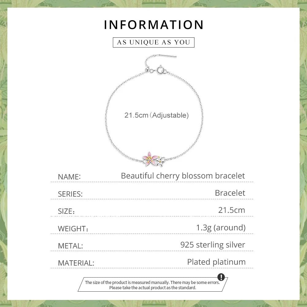 Beautiful Cherry Blossom Bracelet Adjustable Silver Snake Chain Link
