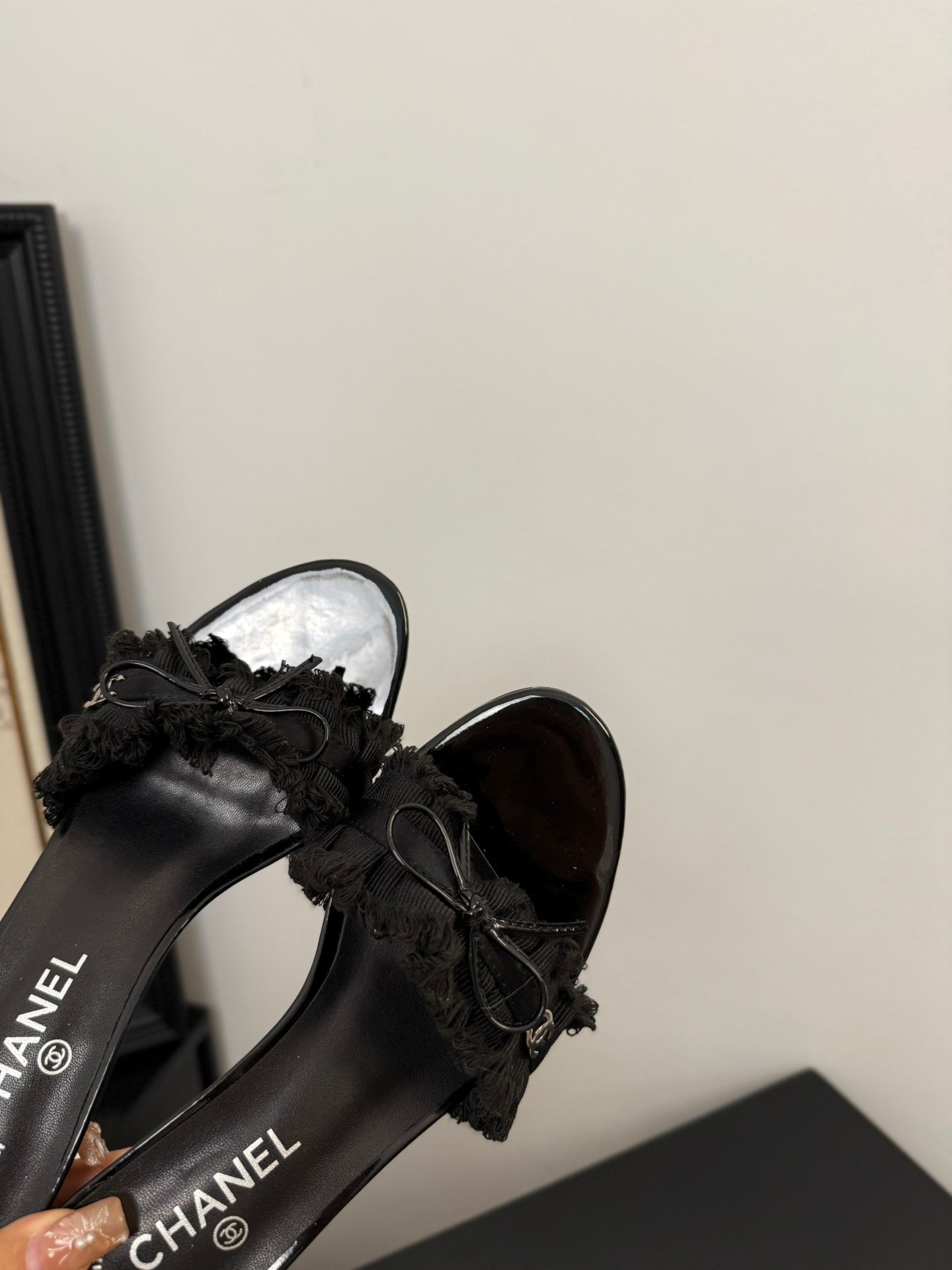 BLACK GROSGRAIN CANVAS BOW MULE SANDALS 65 MM