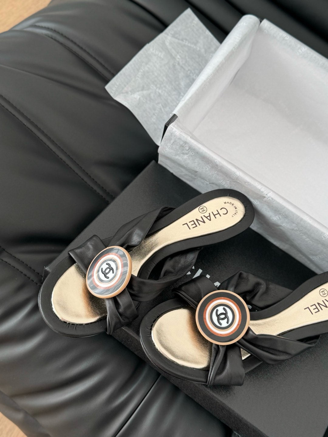 BLACK LAMBSKIN CC SLIDE SANDALS