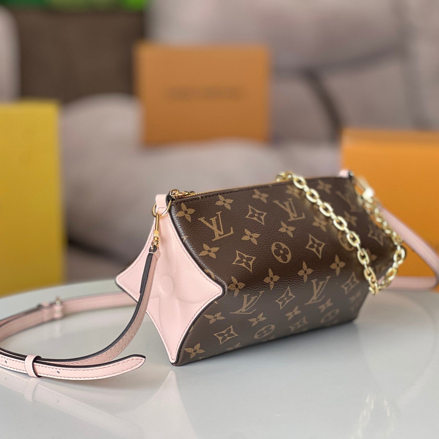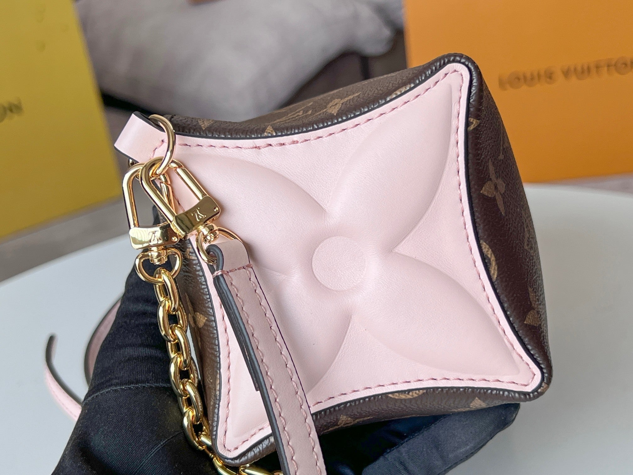 • Material: Monogram canvas and calfskin sides
