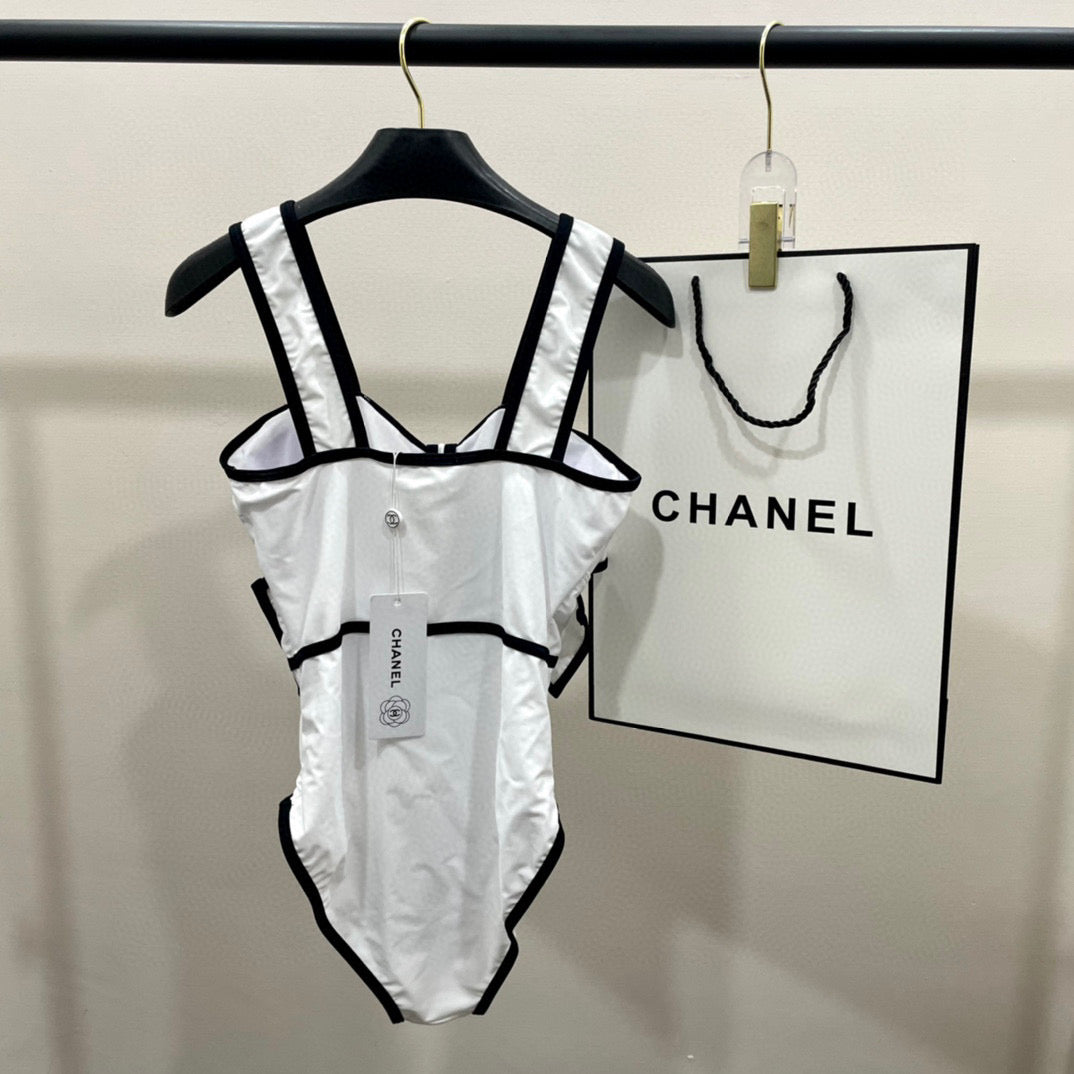 BODYSUIT SWIMSUIT IN WHITE AND BLACK TRIM 627828