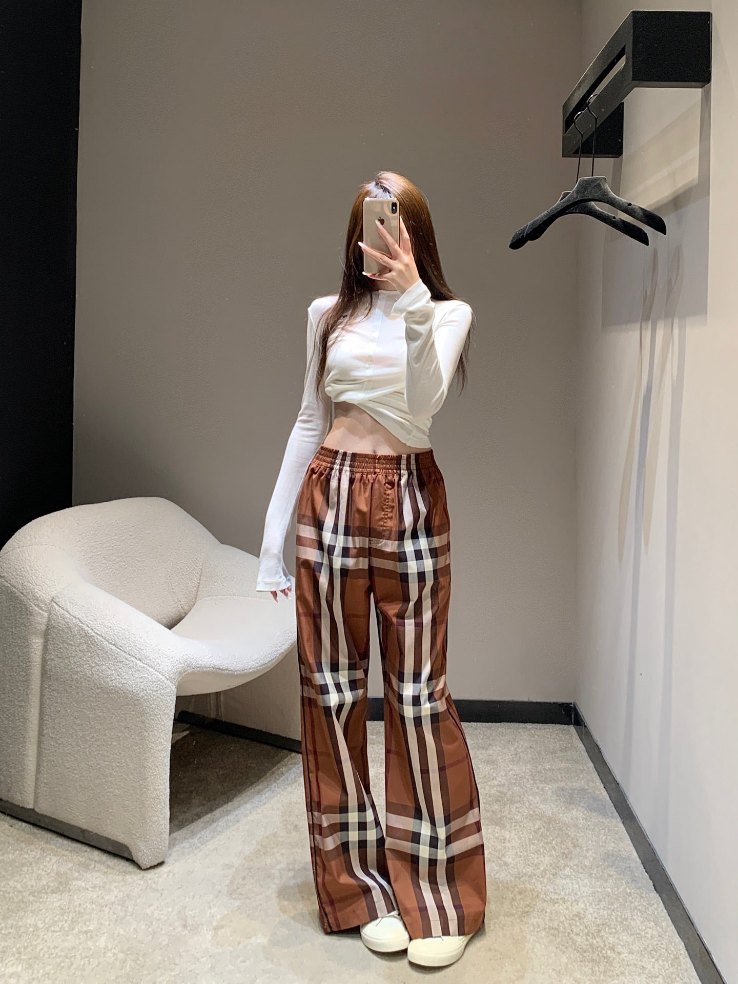 BURBERRY 25S PLAID STRAIGHT-LEG PANTS 092