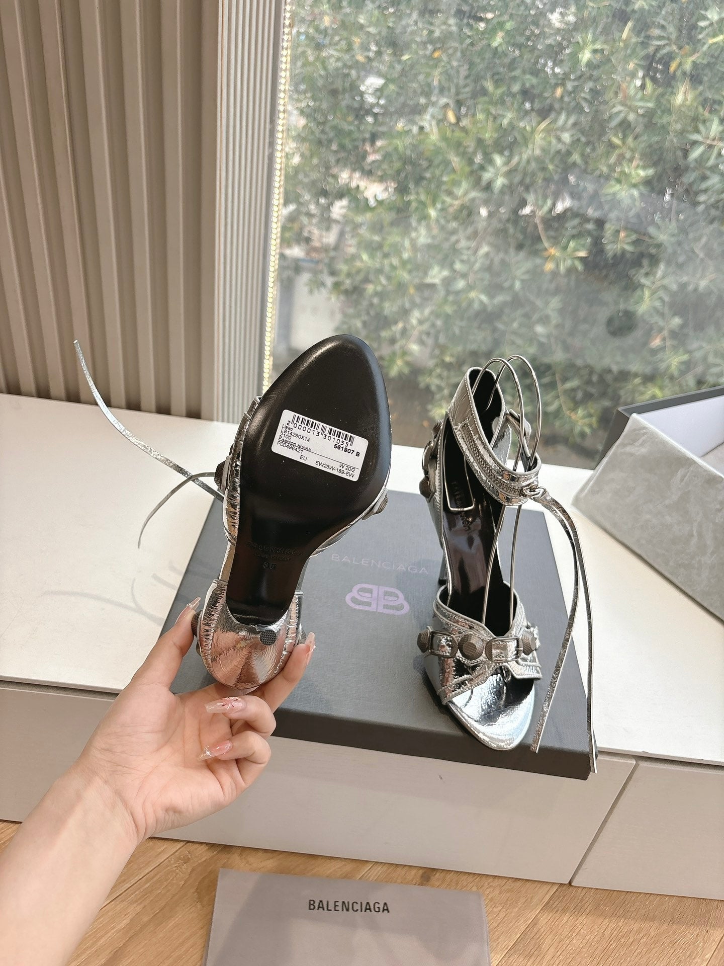CAGOLE HIGH-HEEL SANDALS IN SILVER METALLIC LAMBSKIN