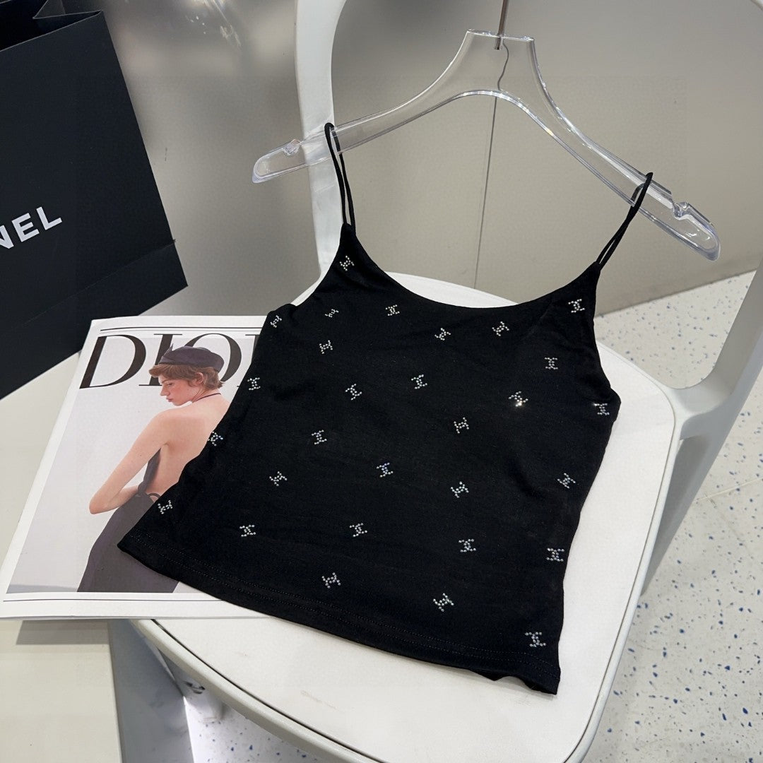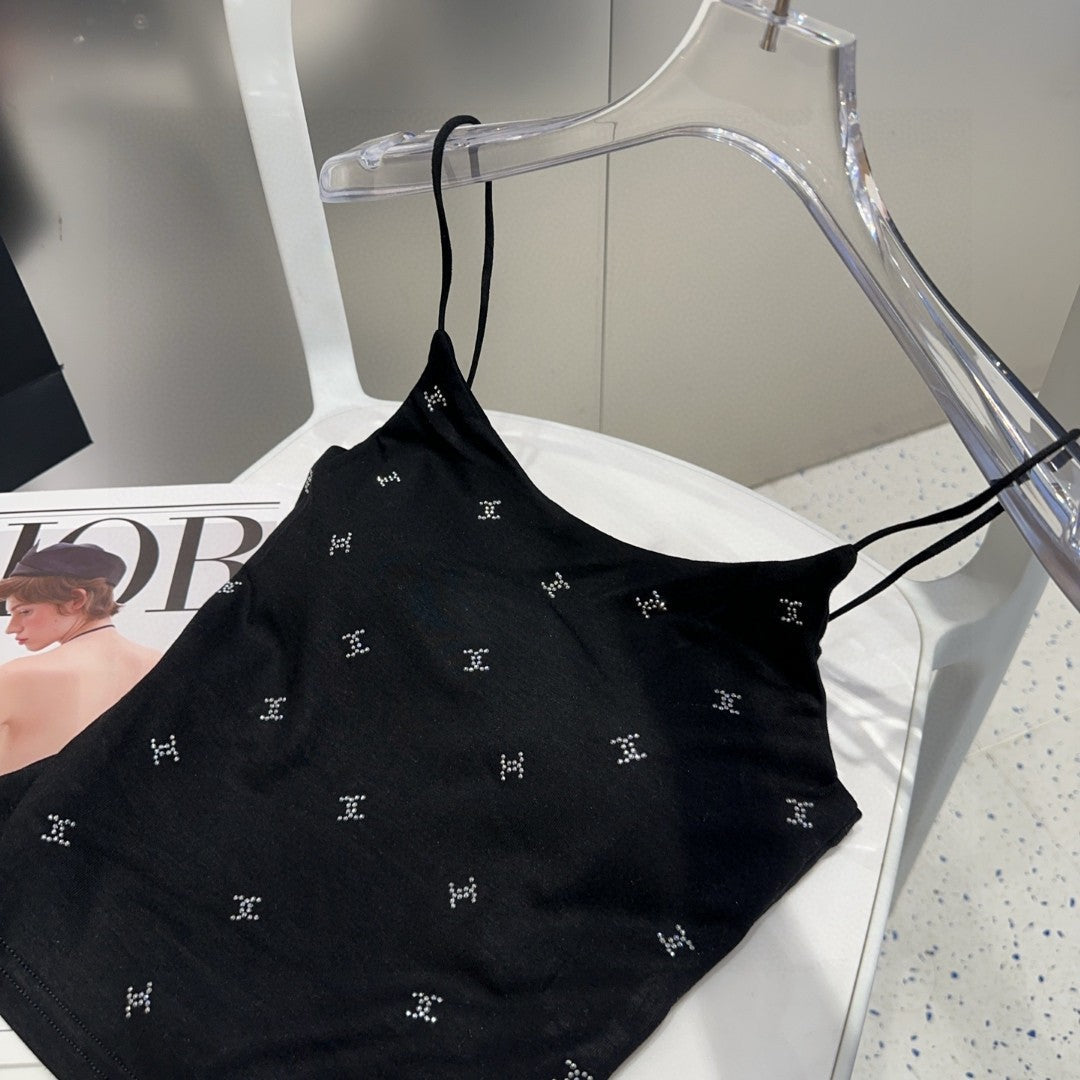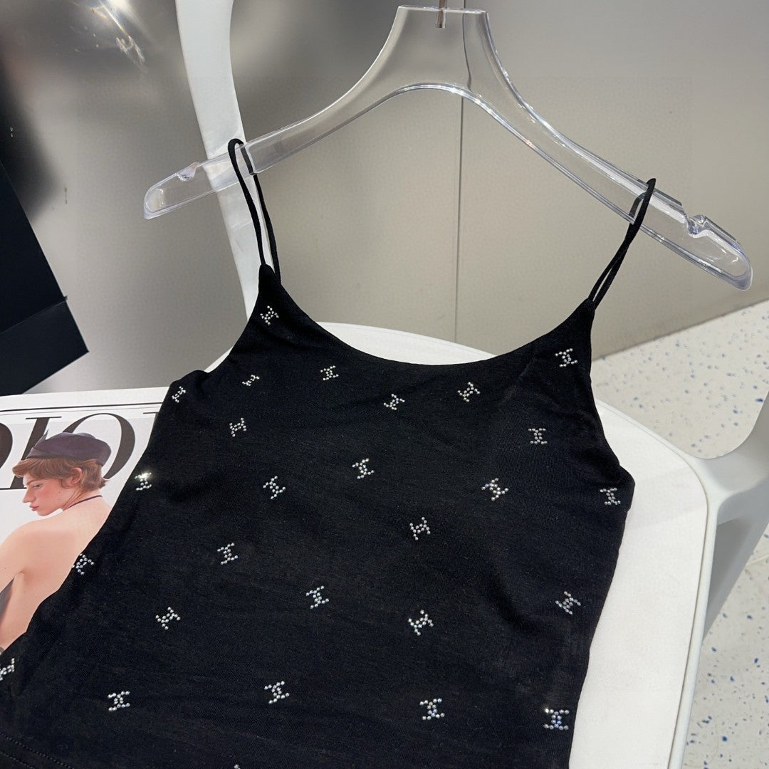 CAMI TOP 639175 IN BLACK COTTON RIBBED KNIT