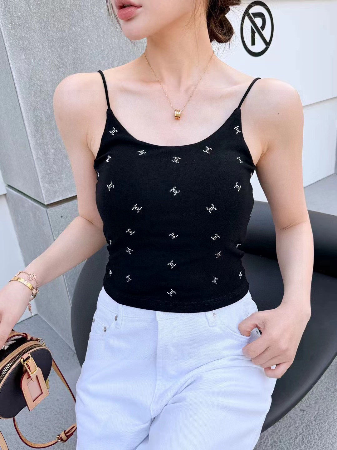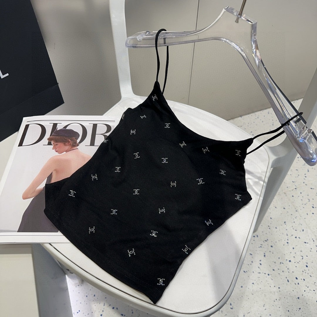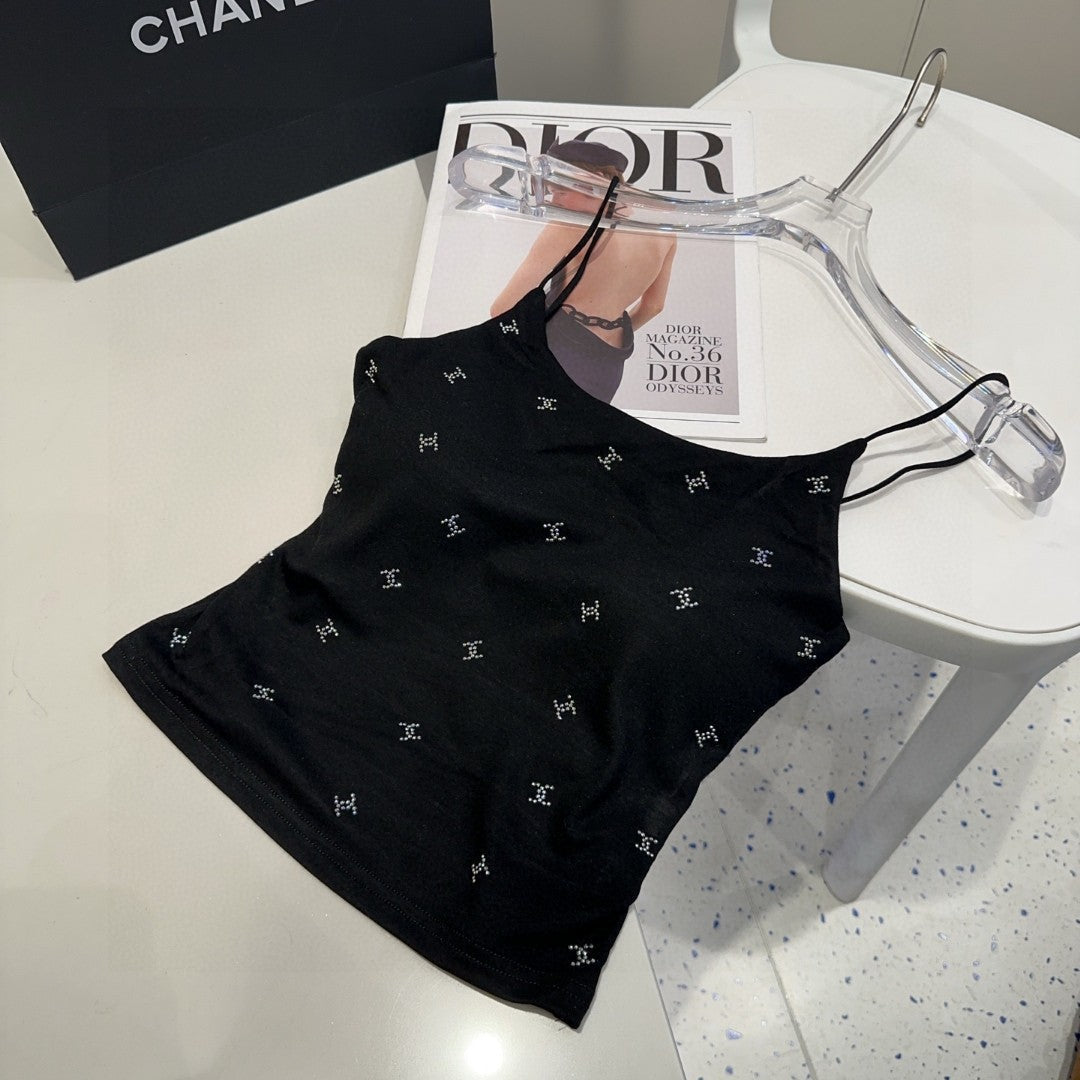CAMI TOP 639175 IN BLACK COTTON RIBBED KNIT