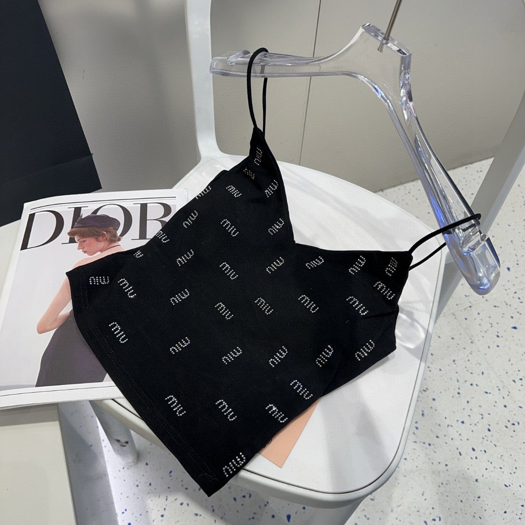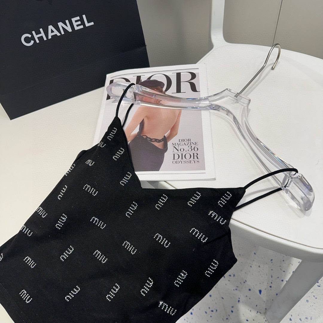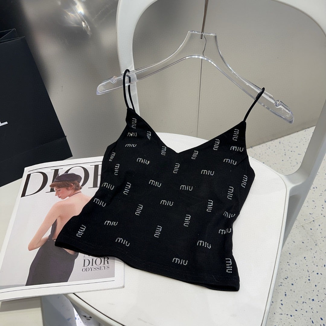 CAMI TOP 640627 IN BLACK COTTON RIBBED KNIT