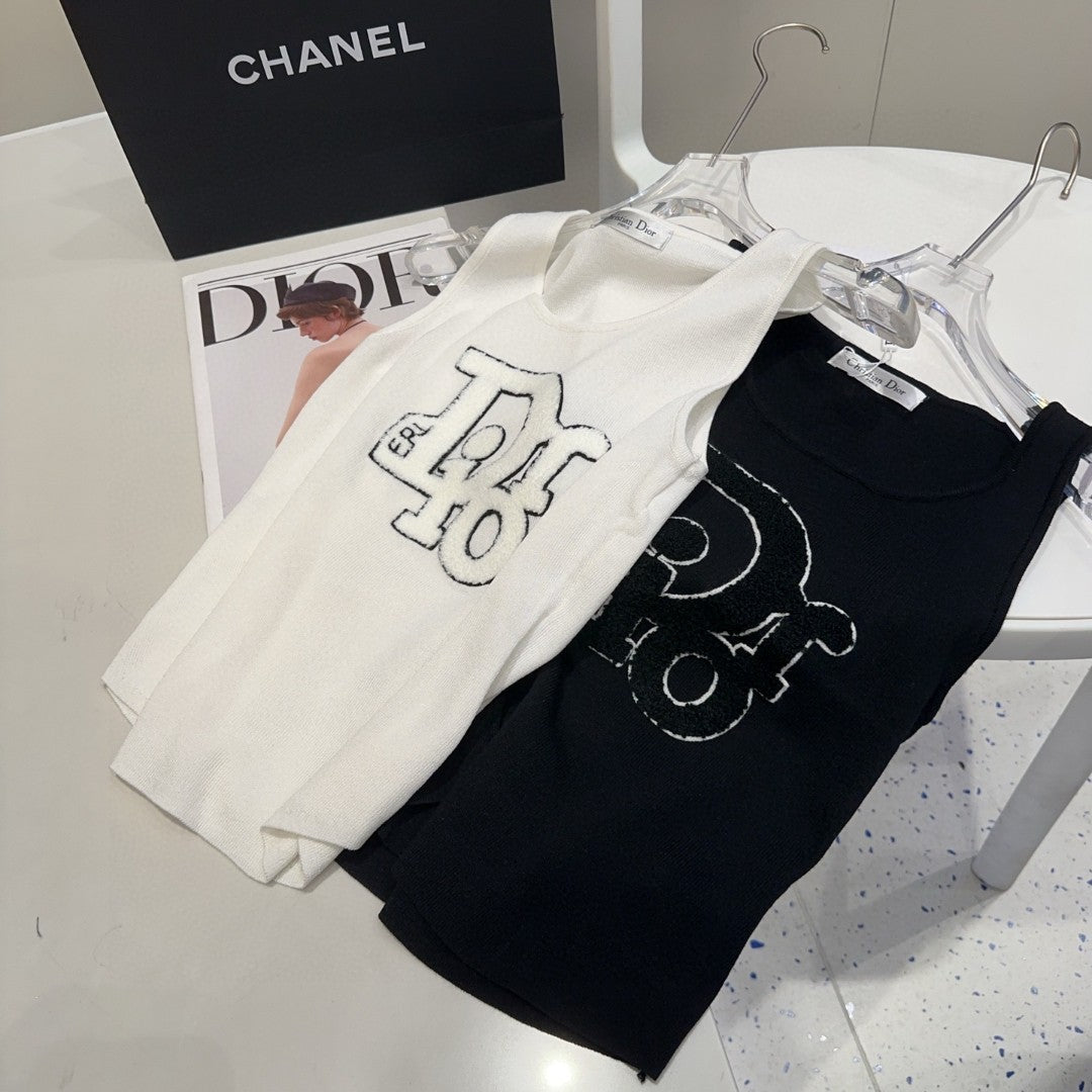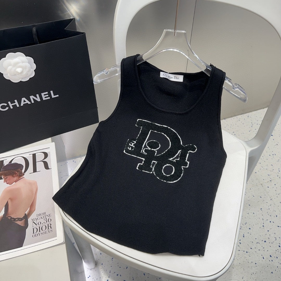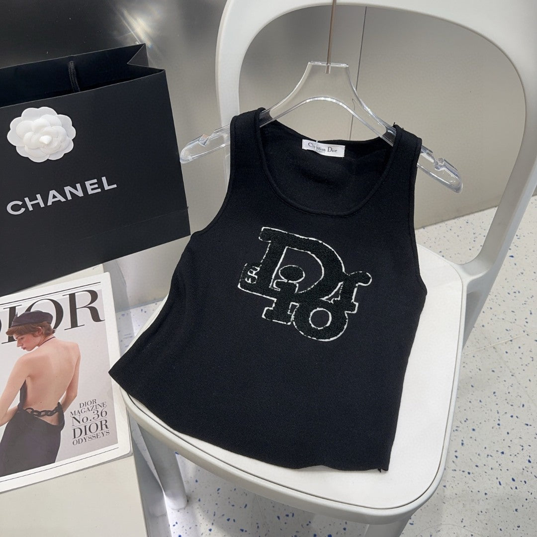 CAMISOLE 619300 IN BLACK COTTON RIBBED KNIT TEXTURED LOGO
