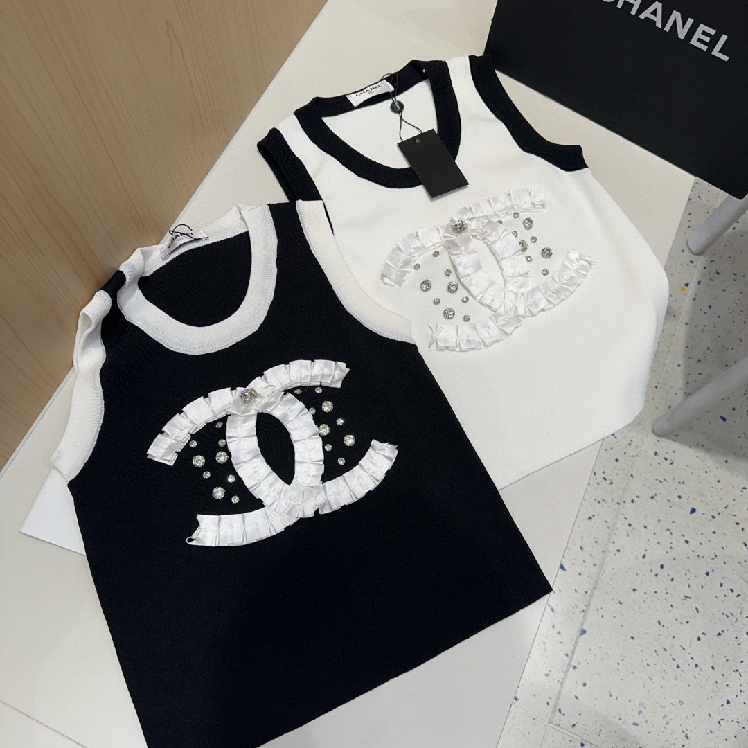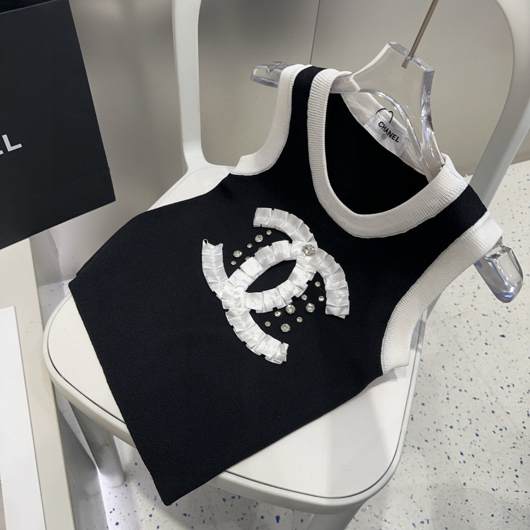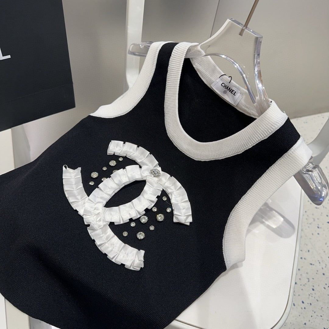 CAMISOLE 627703 IN BLACK COTTON RIBBED KNIT WHITE TRIM