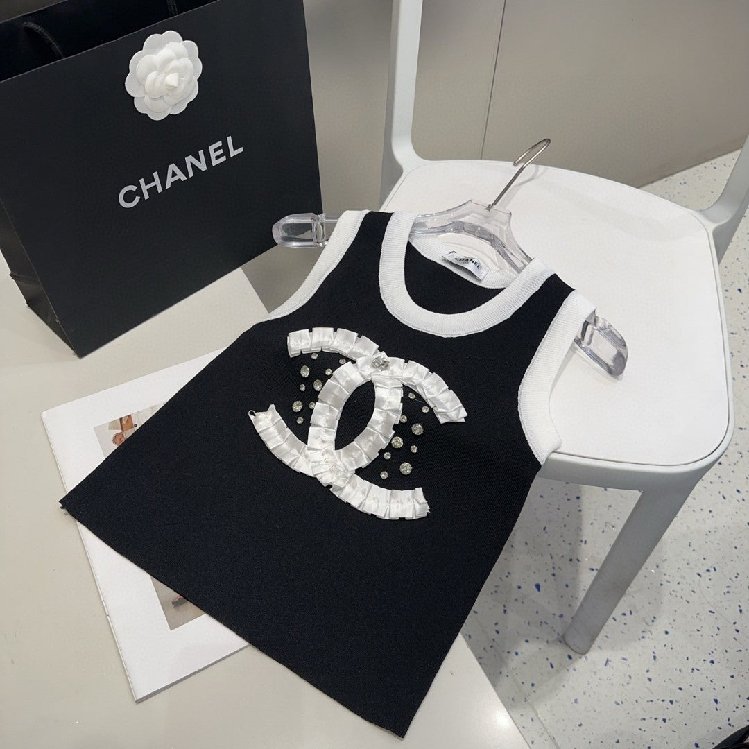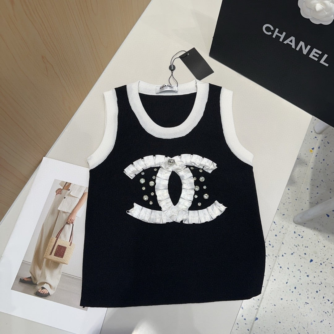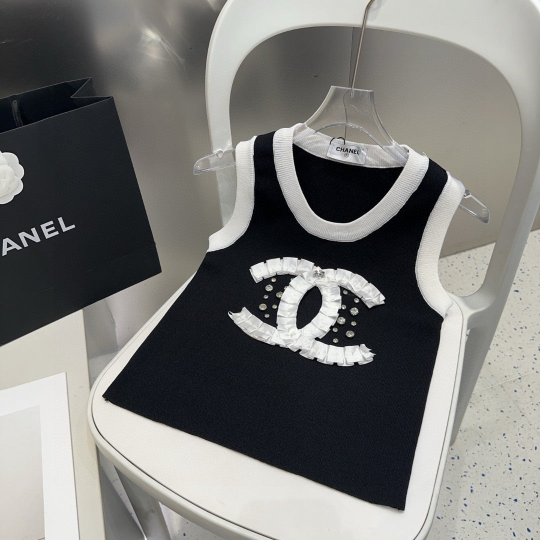 CAMISOLE 627703 IN BLACK COTTON RIBBED KNIT WHITE TRIM