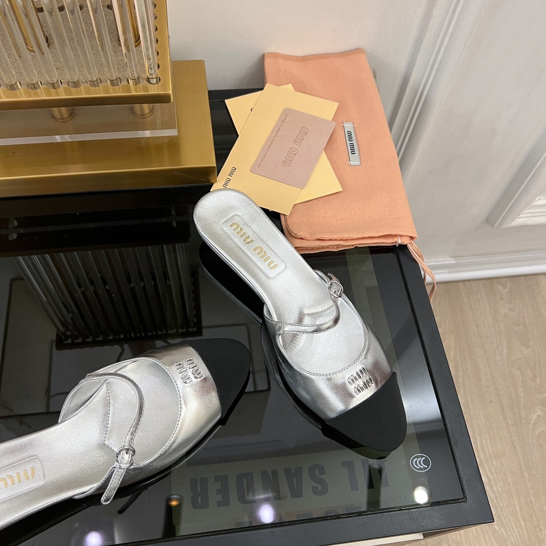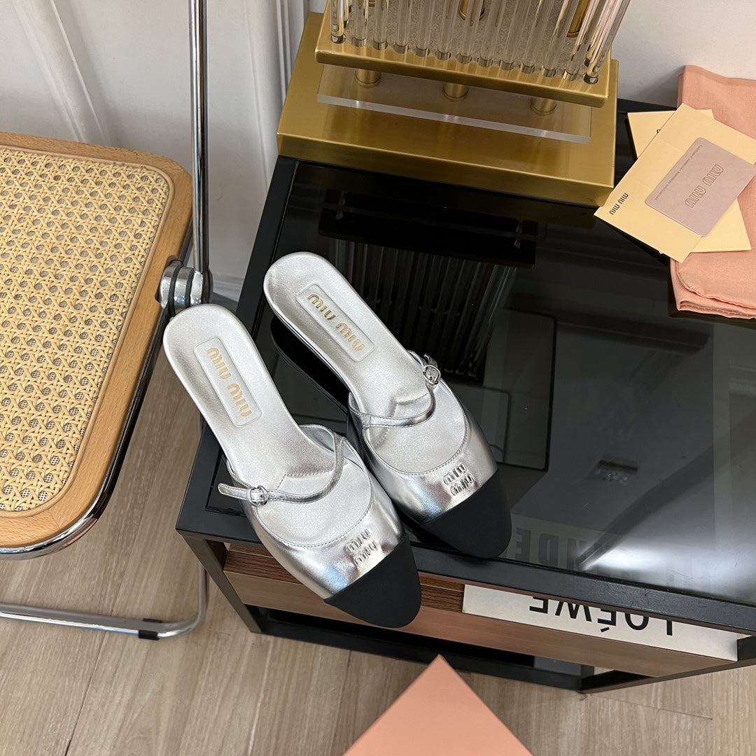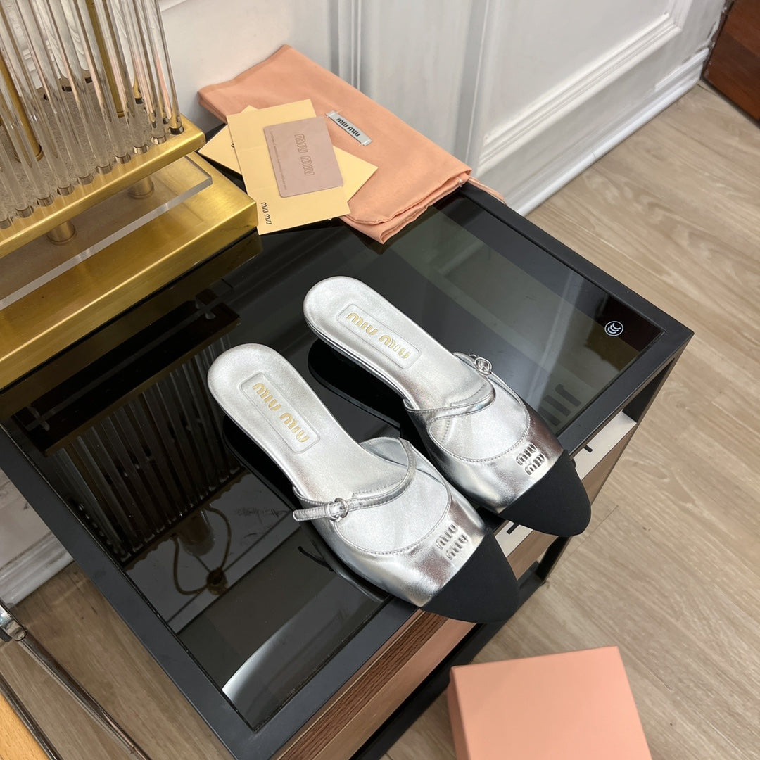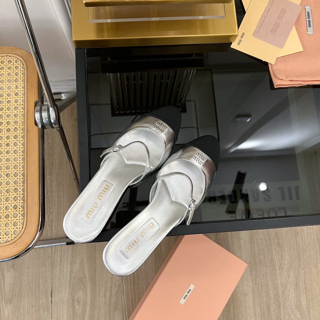 Cap Toe Mules Silver Sheepskin