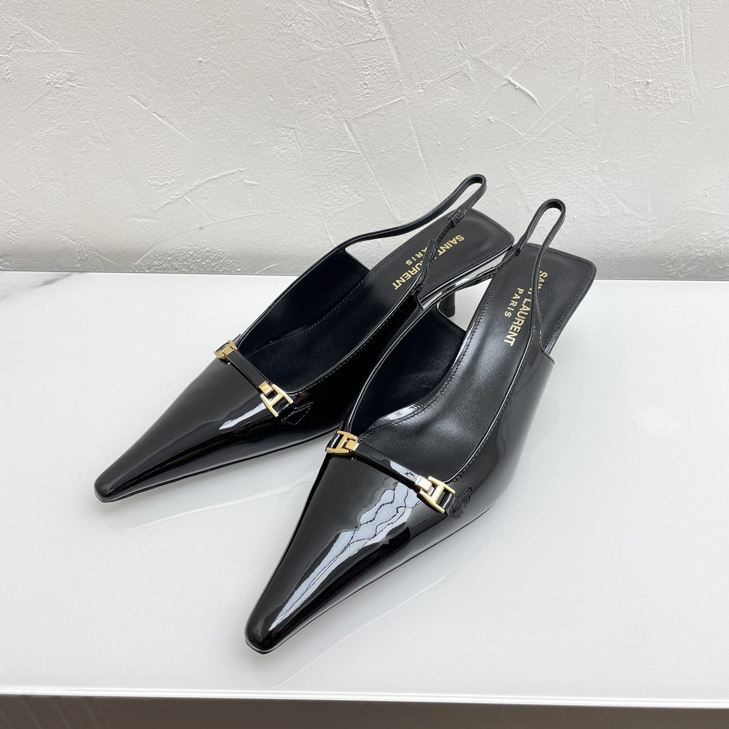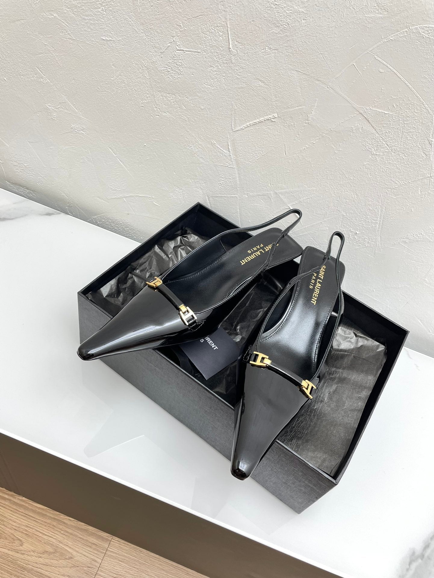 CARINE SLINGBACK PUMPS 45 IN PATENT BLACK LEATHER