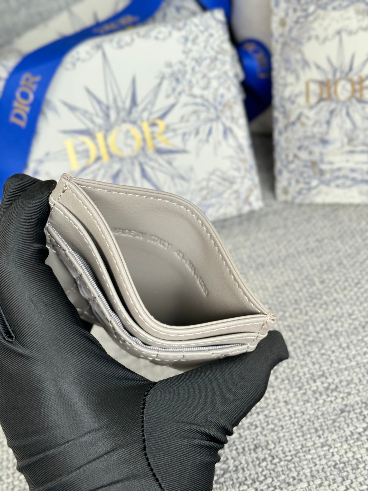 CARO FREESIA CARD HOLDER 10 IN LIGHT GREY CANNAGE CALFSKIN