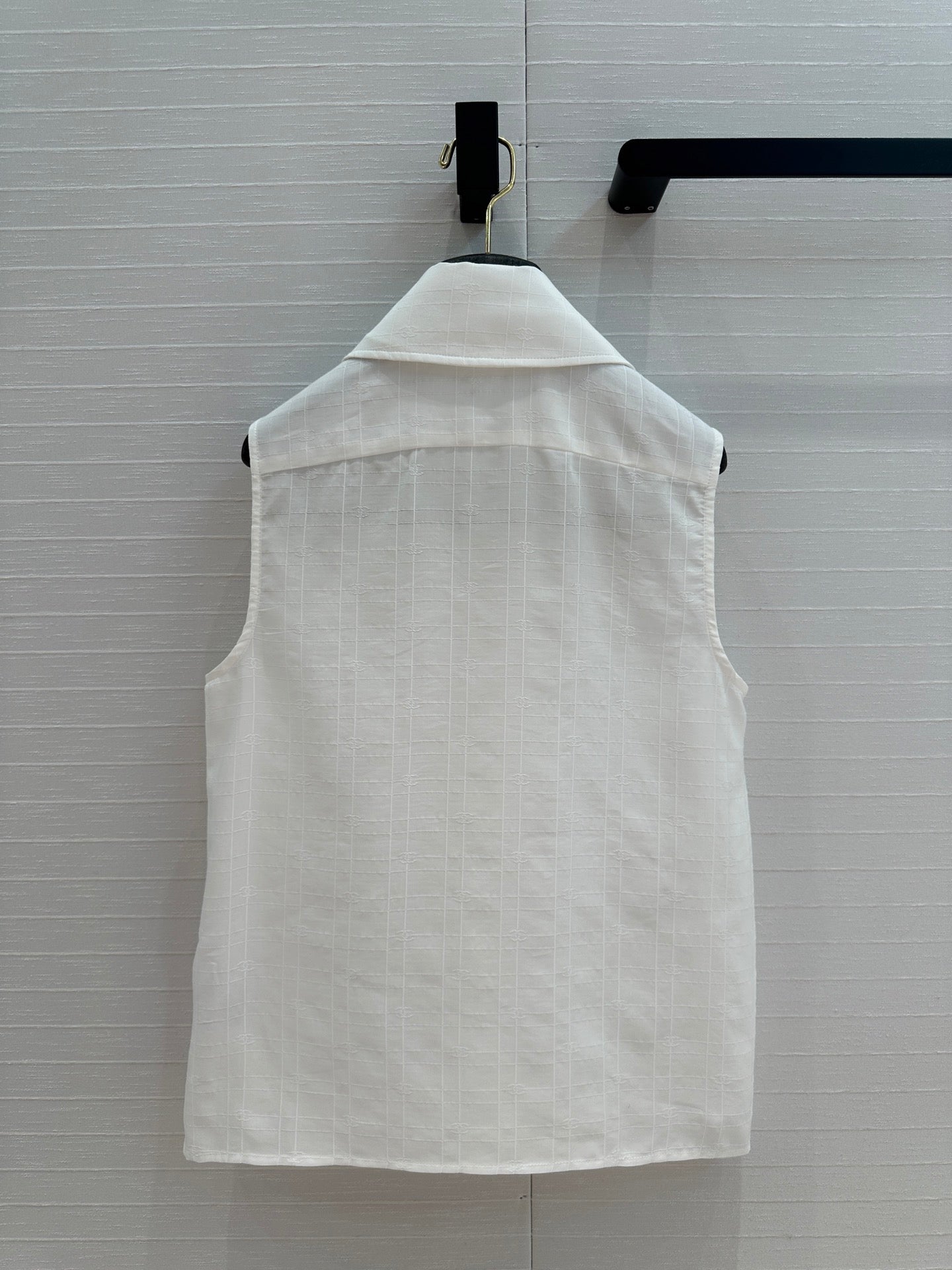 CC 25 Sleeveless Shirt White Silk Cotton Fabric