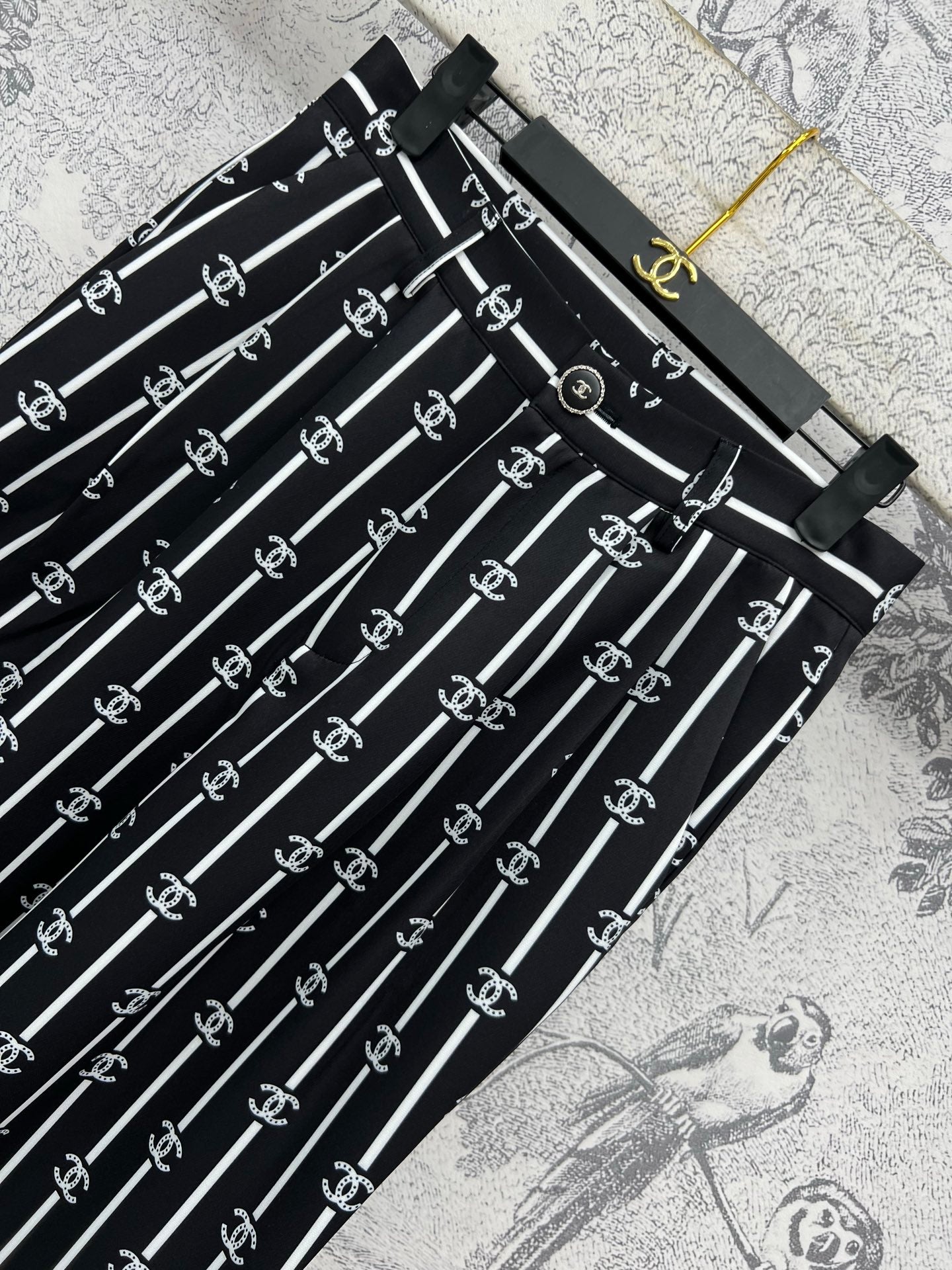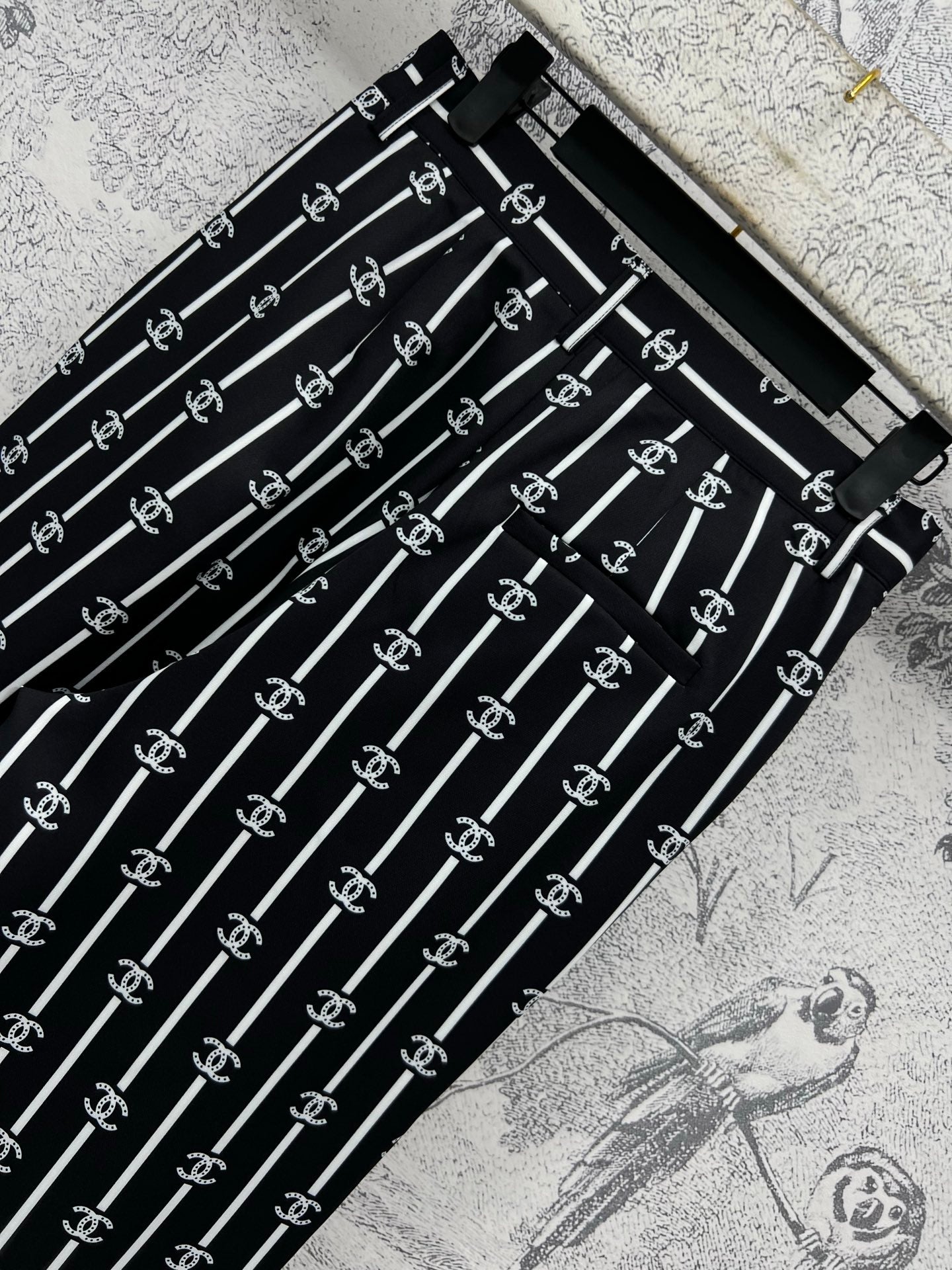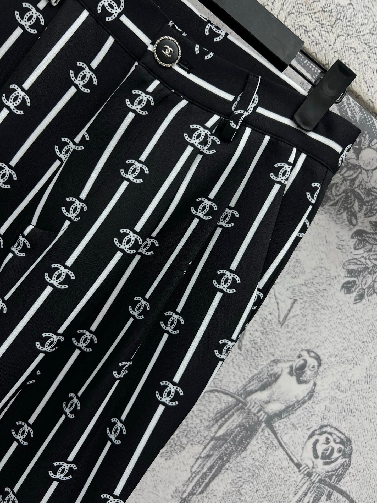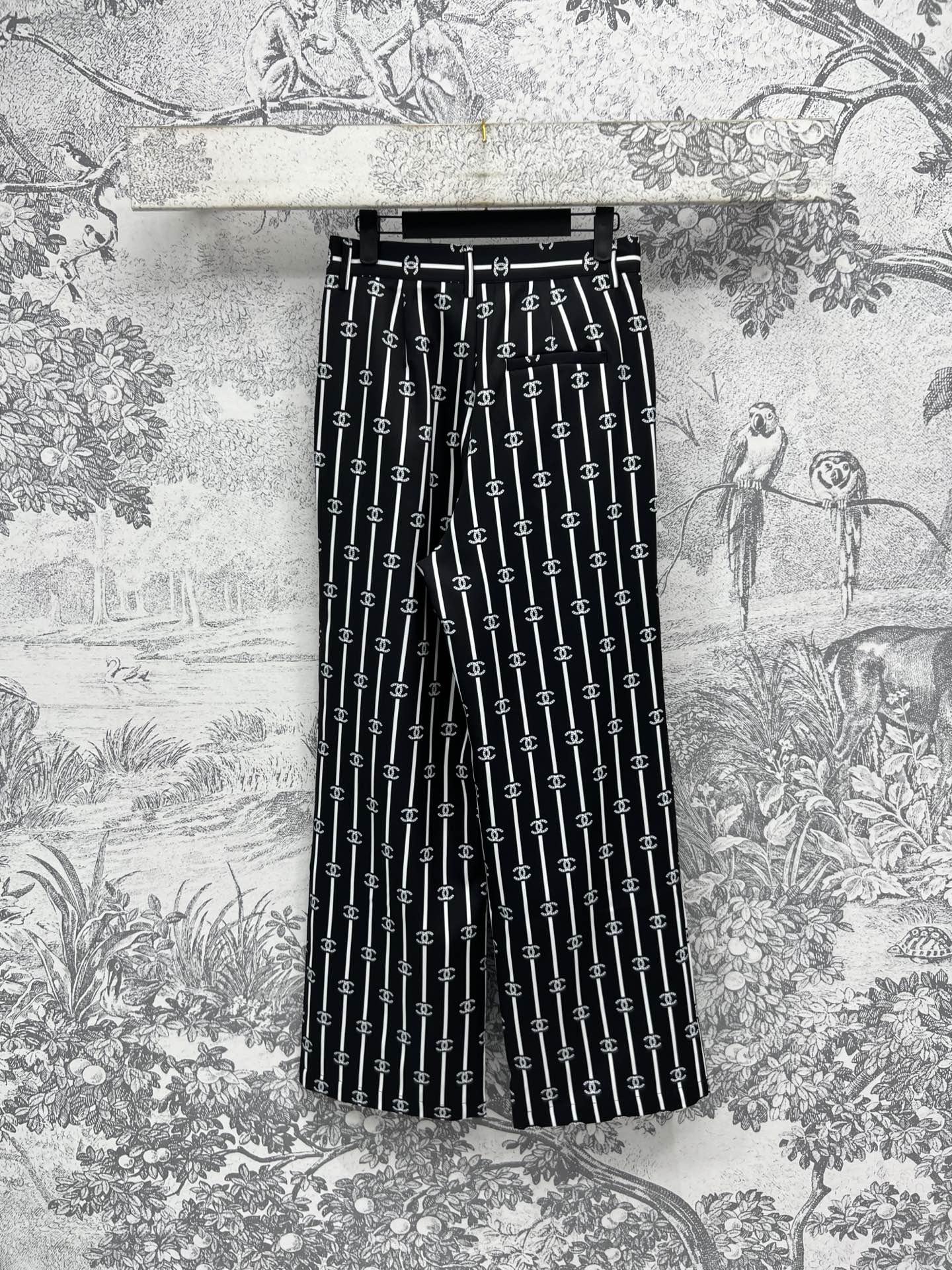 CC 25 Wide Leg Pants Black White Polyester Fiber