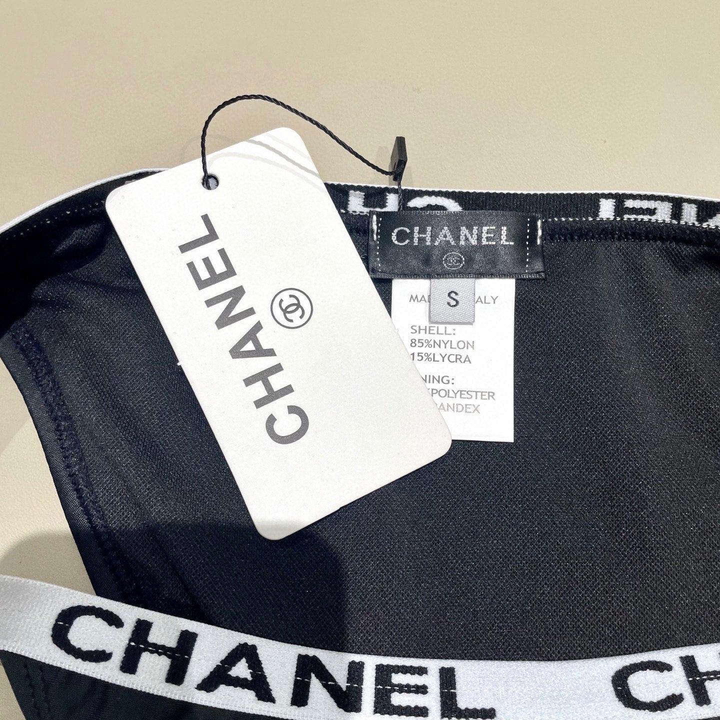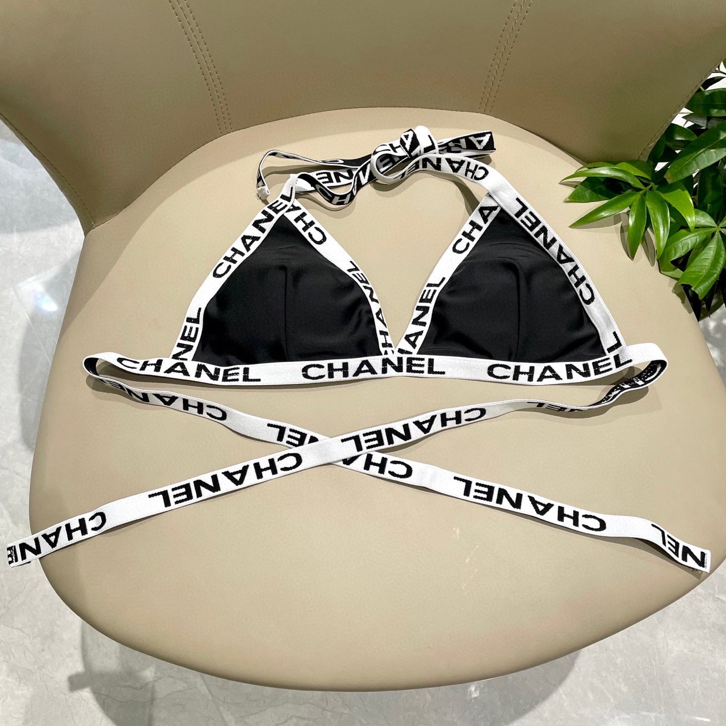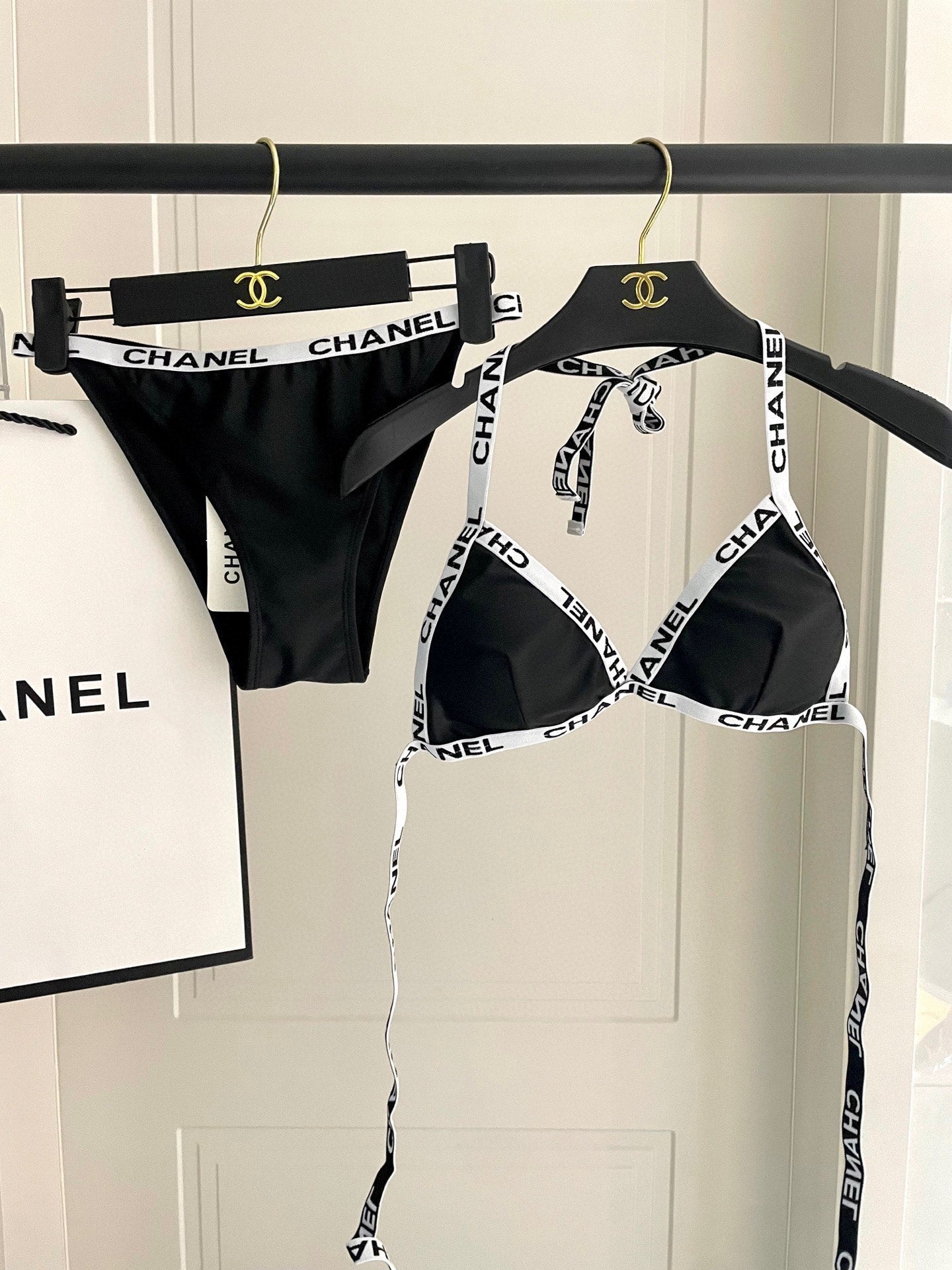 CC BIKINI SWIMSUIT SET IN BLACK WITH WHITE TRIM 627832