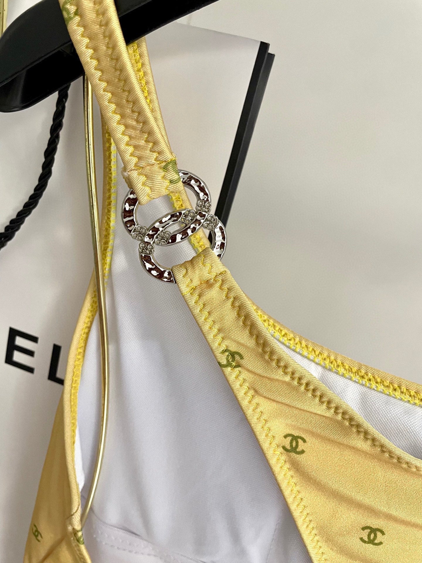 CC BIKINI SWIMSUIT SET IN YELLOW AND GREEN LOGO 593033