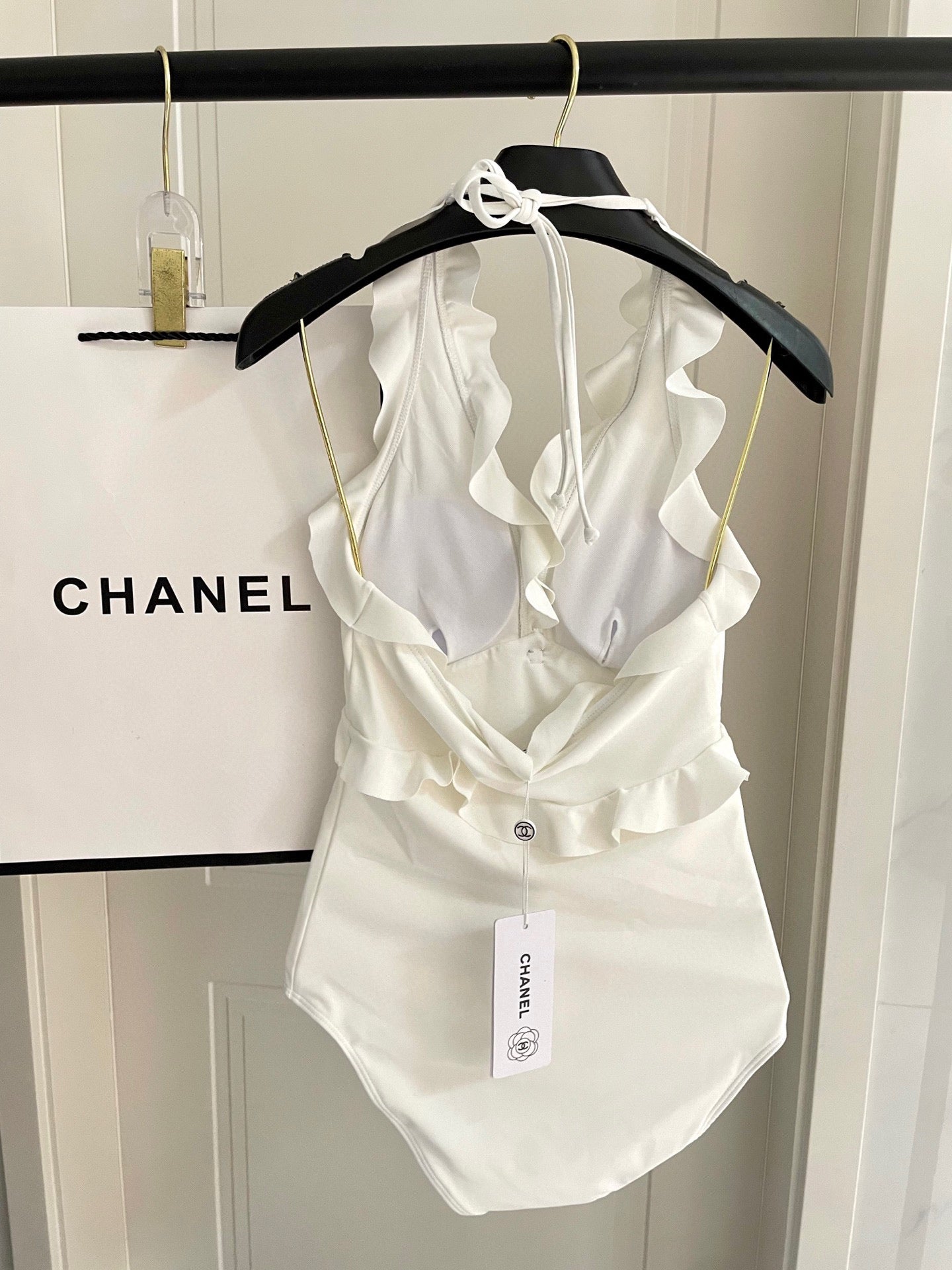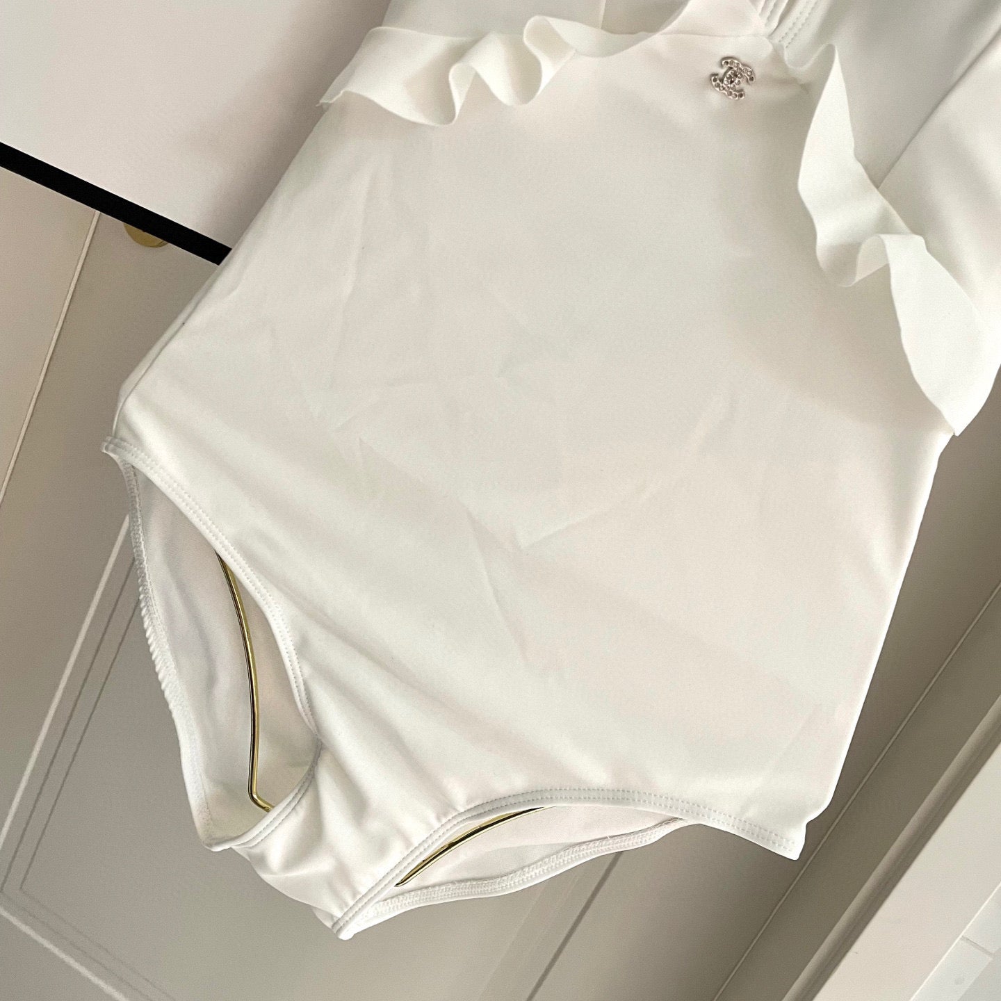 CC BIKINI SWIMSUIT SET WHITE AND RUFFLED TRIM 622179
