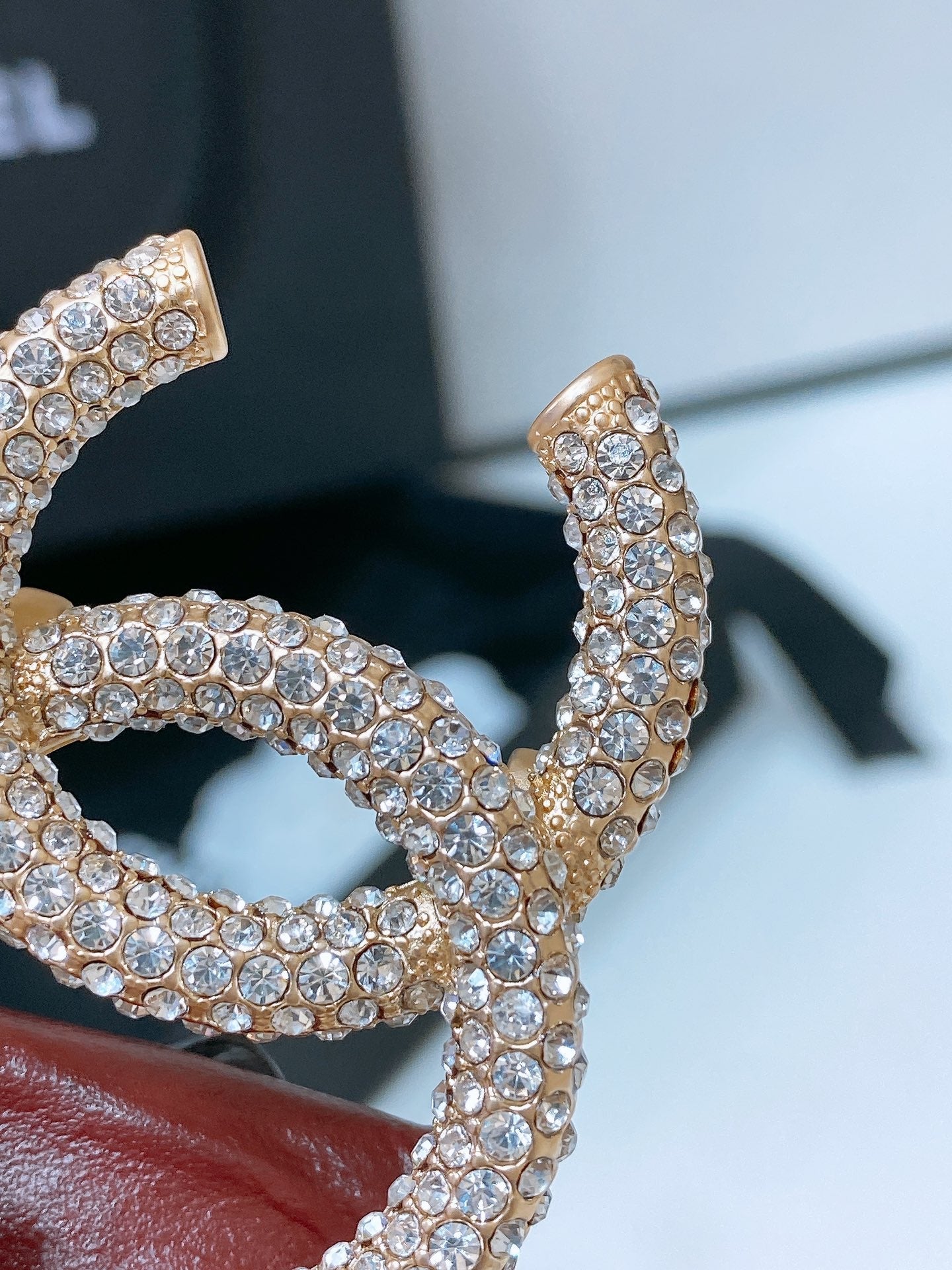 CC ELASTIC BELT 30MM IN WINE RED CALFSKIN GOLD HARDWARE WITH RHINSTONES