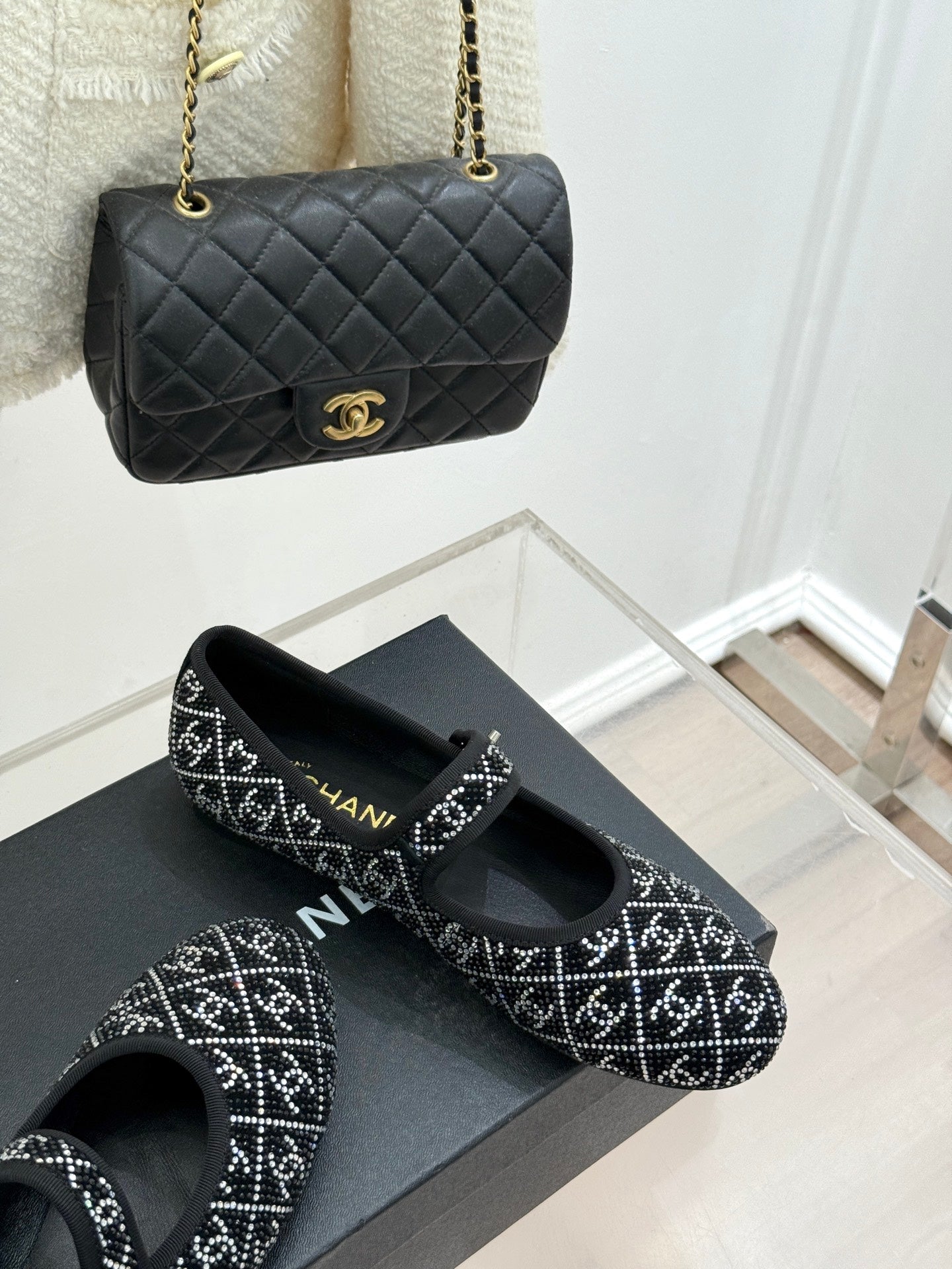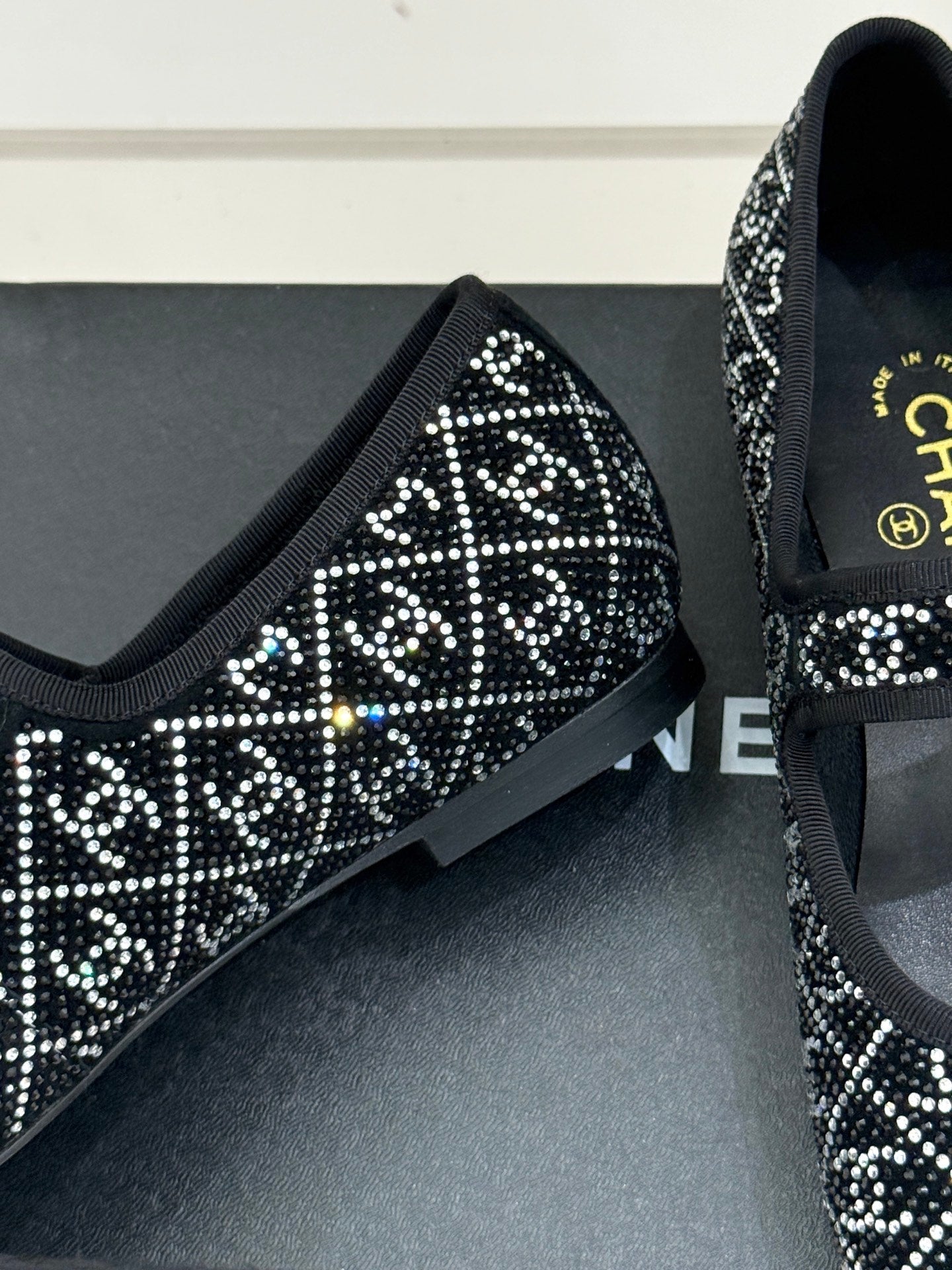 CC FLAT MARY JANE 25SS IN BLACK EMBELLISHED WITH RHINESTONES