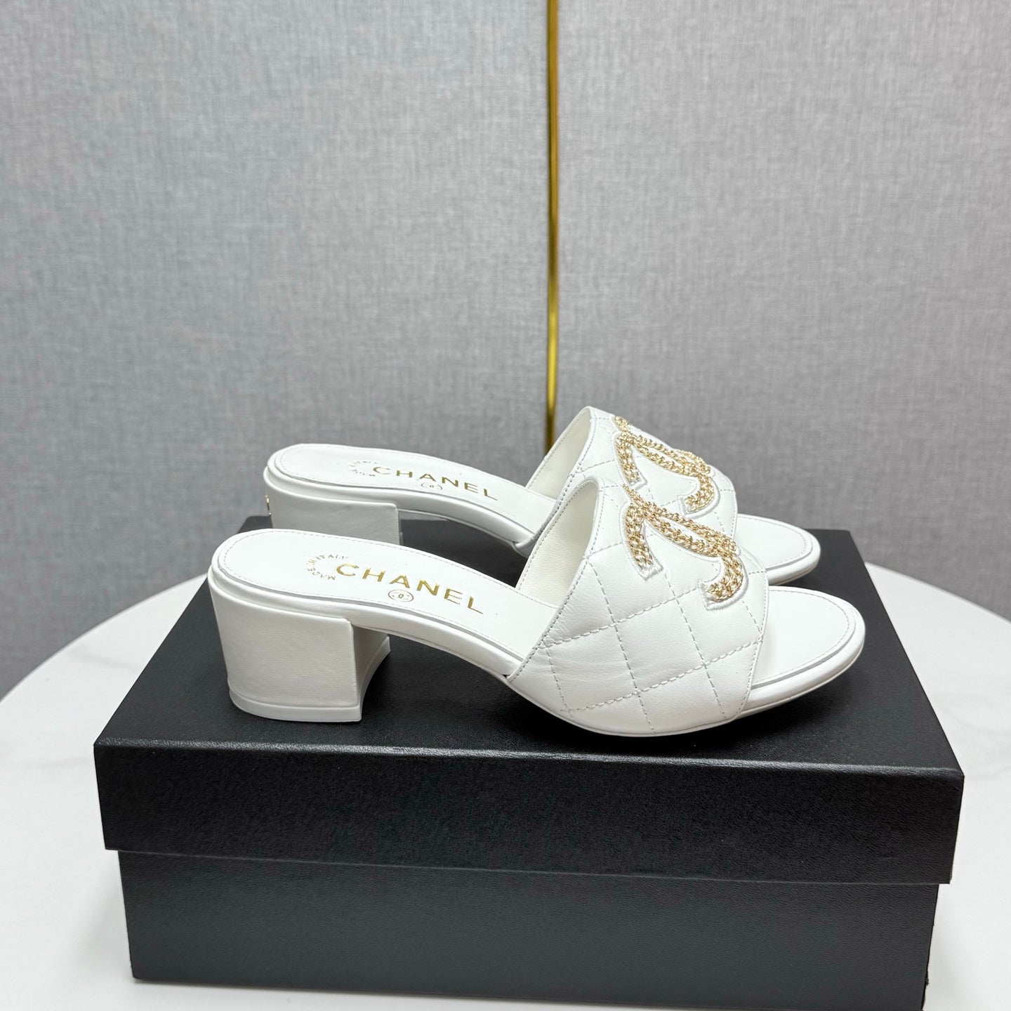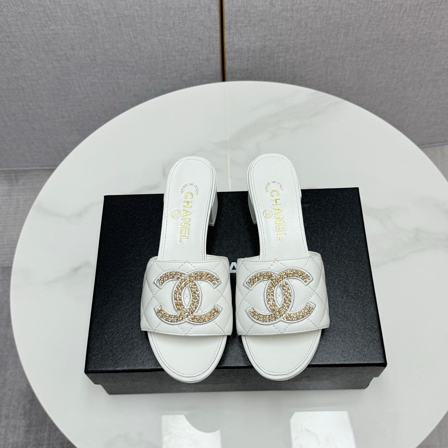 CC HIGH HEEL 25S IN WHITE CALFSKIN WITH LOGO