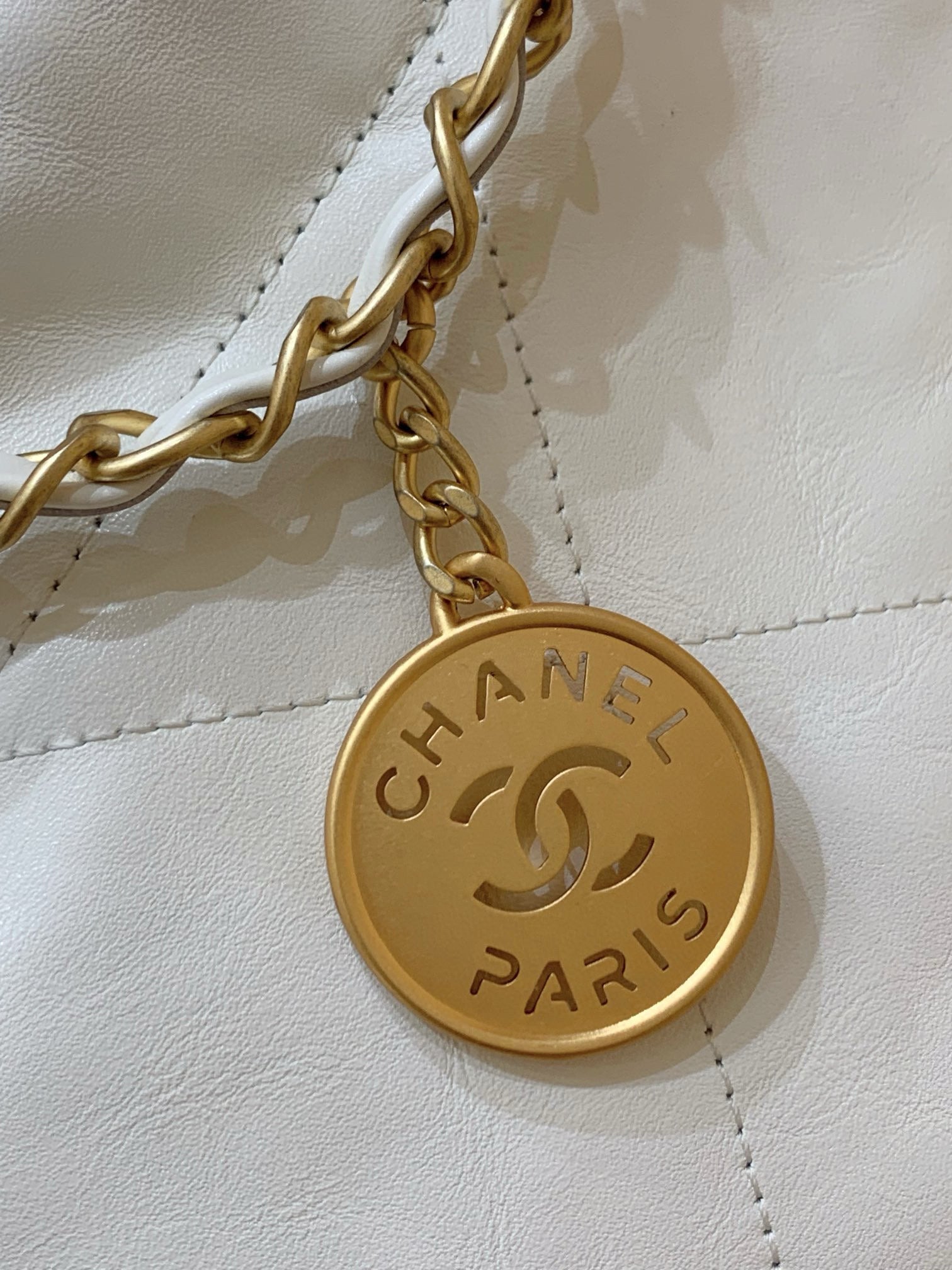 CC HOBO BAG 37 WHITE CC BLACK LAMBSKIN GOLD HARDWARE
