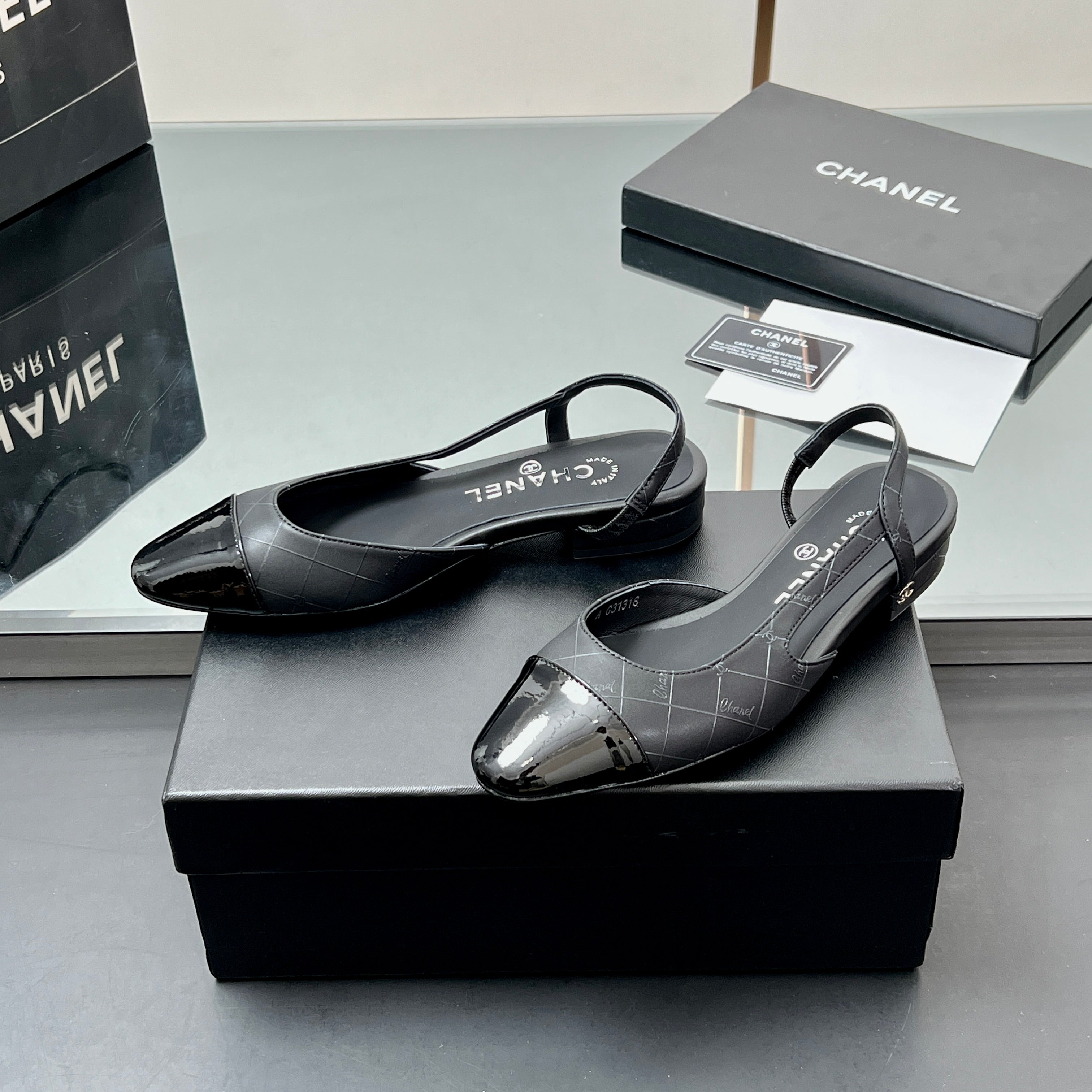 CC SLINGBACK 25S 25 MM IN BLACK LAMBSKIN WITH CHECK PATTERN