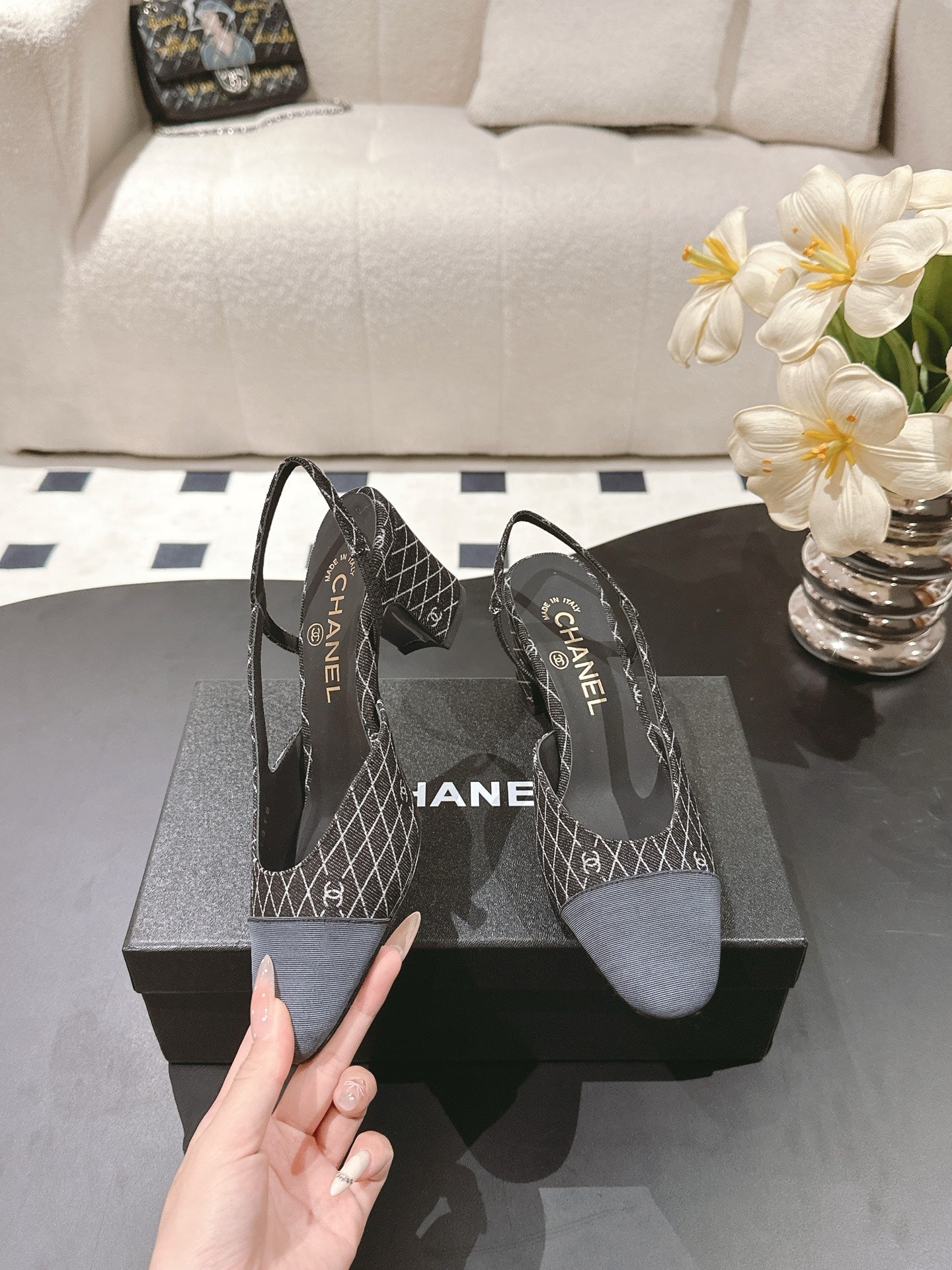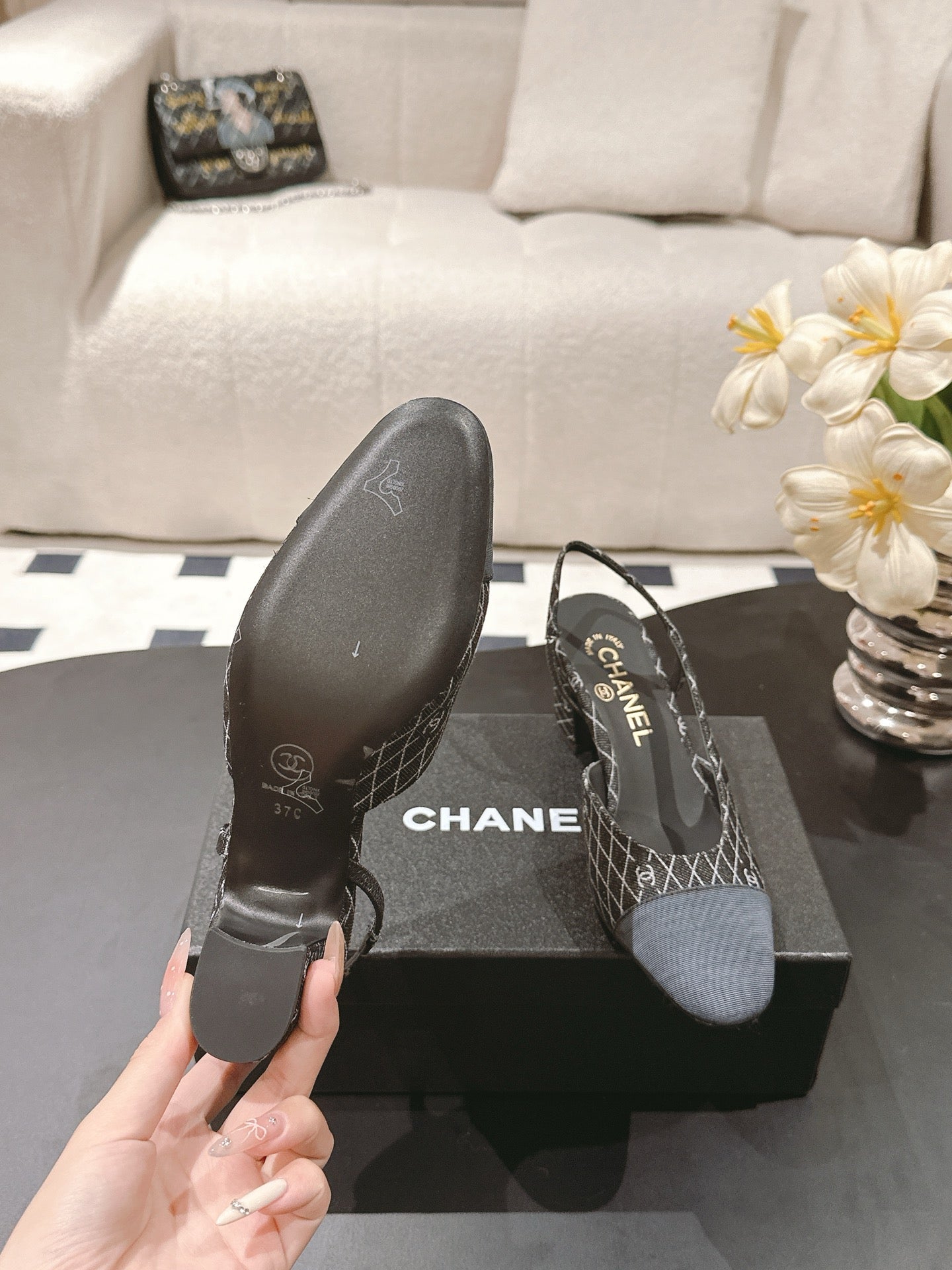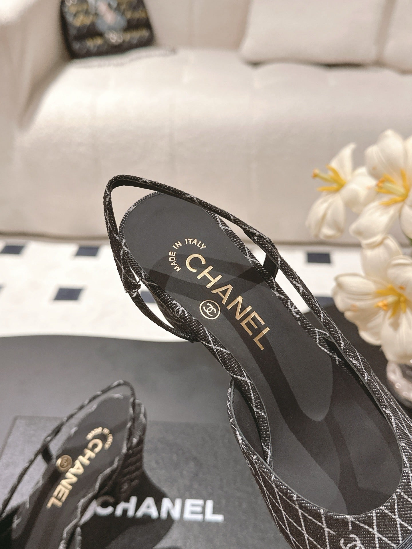 CC SLINGBACK 25S 65 MM IN BLACK DENIM WITH PLAID PATTERN
