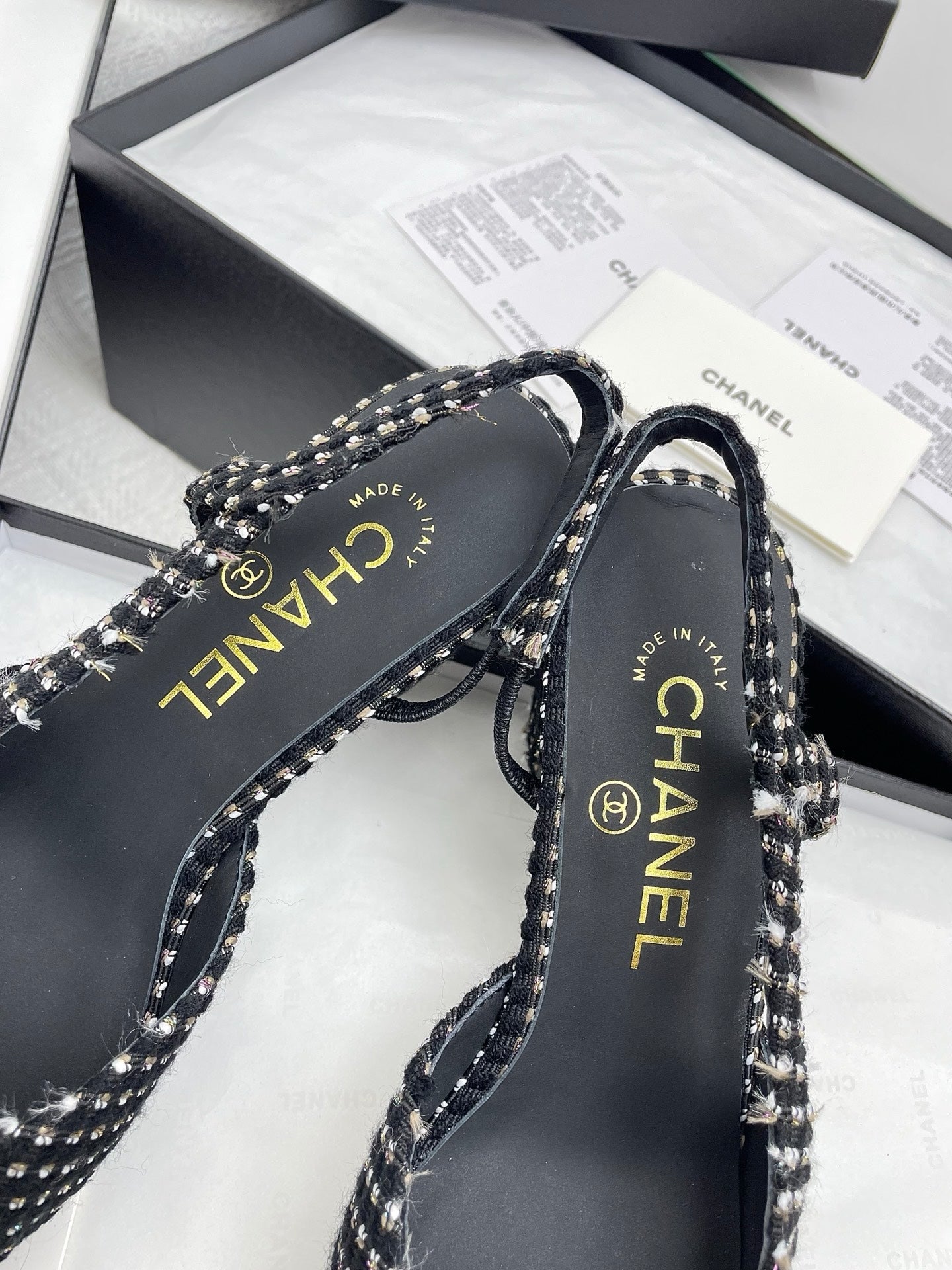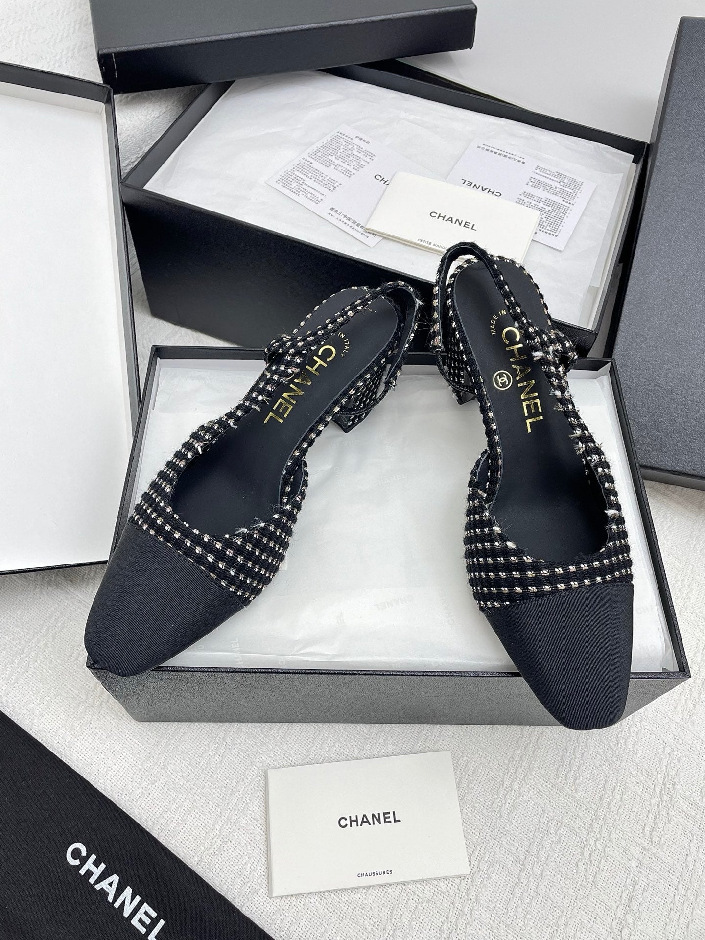 CC SLINGBACK 25S 65 MM IN BLACK TWEED AND FABRIC