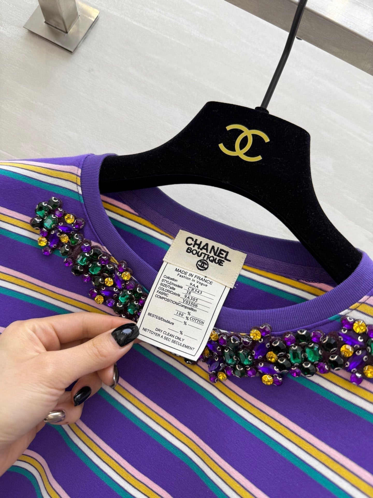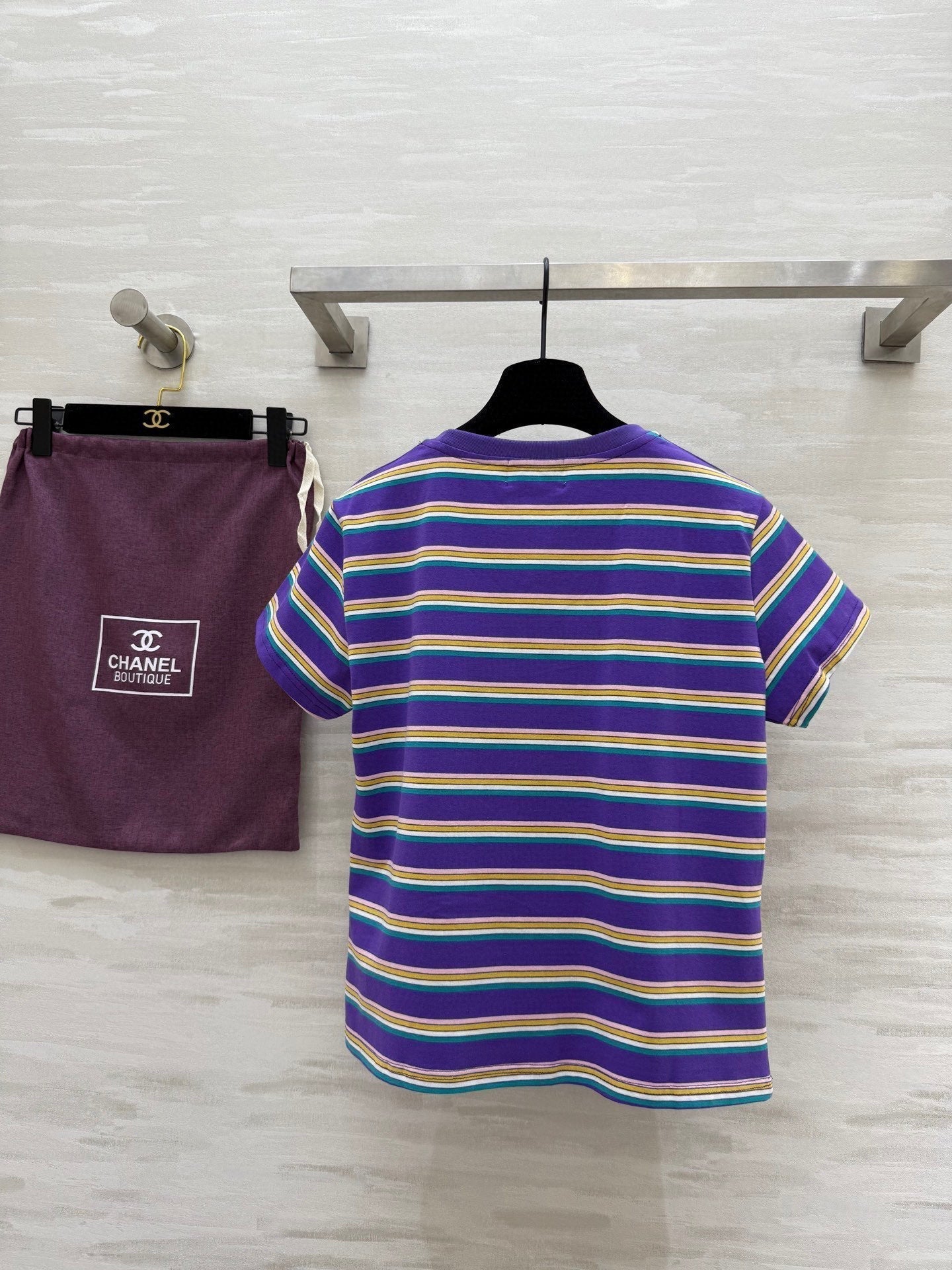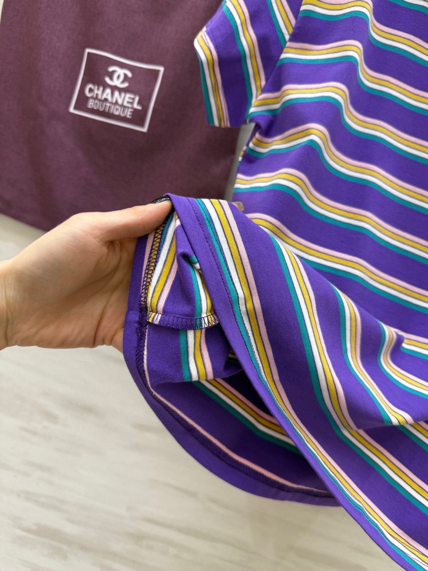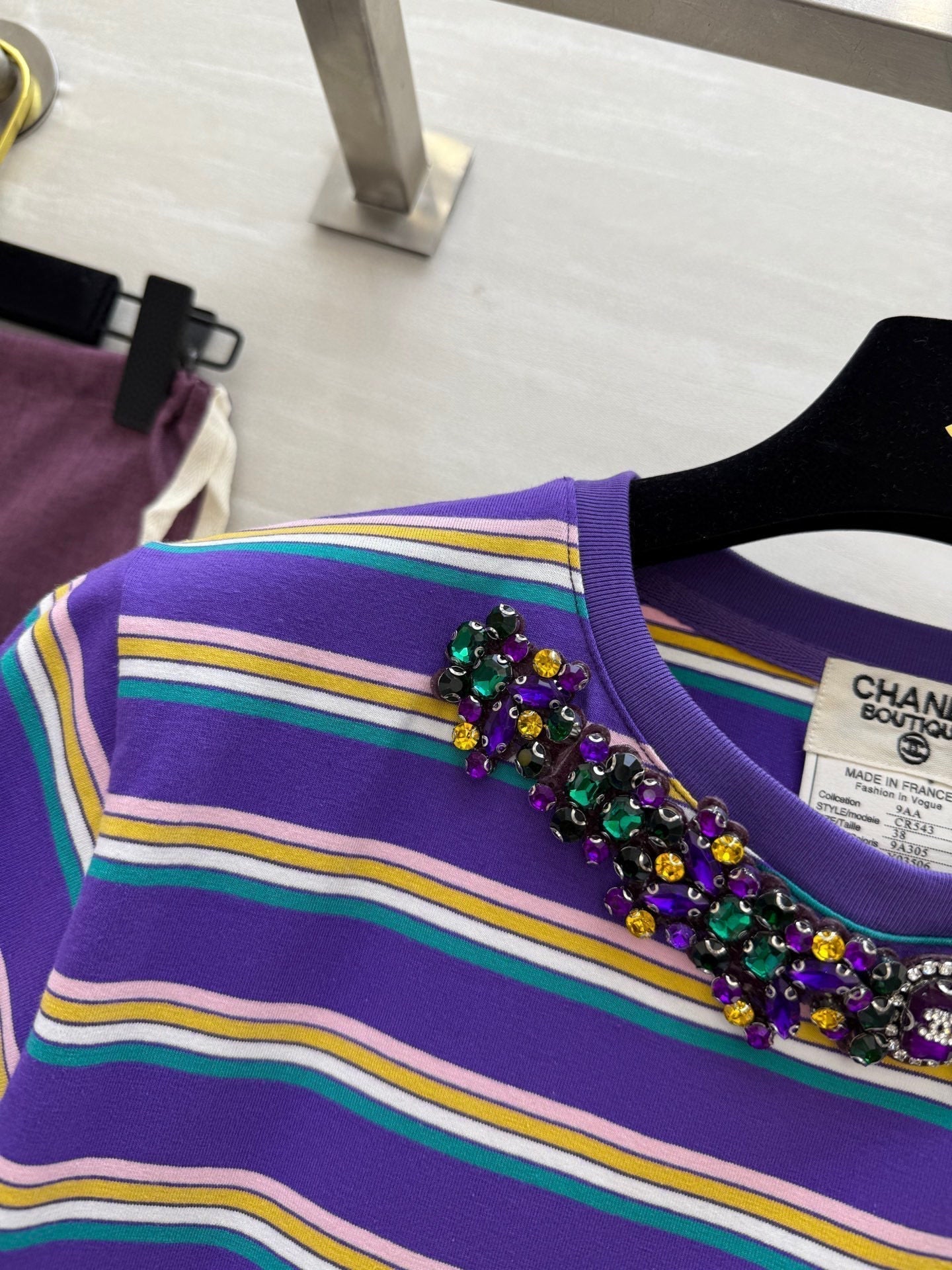 CC Strip Beaded T-shirt Purple Cotton